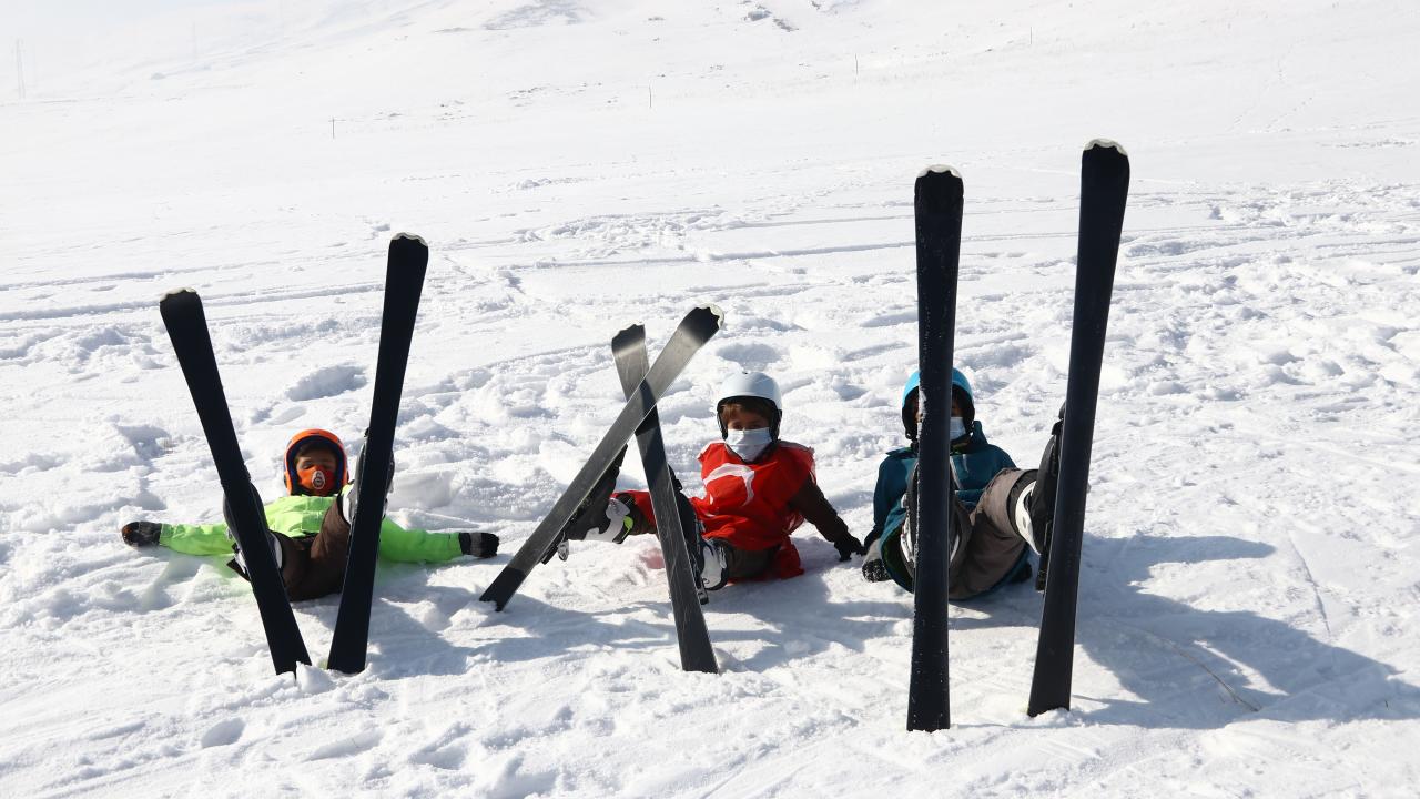 Çocukların yemek ve ulaşım masraflarını üstlenen belediye ekipleri, evlerinde aldıkları çocukları kayak merkezine getirerek eğitim veriyor.