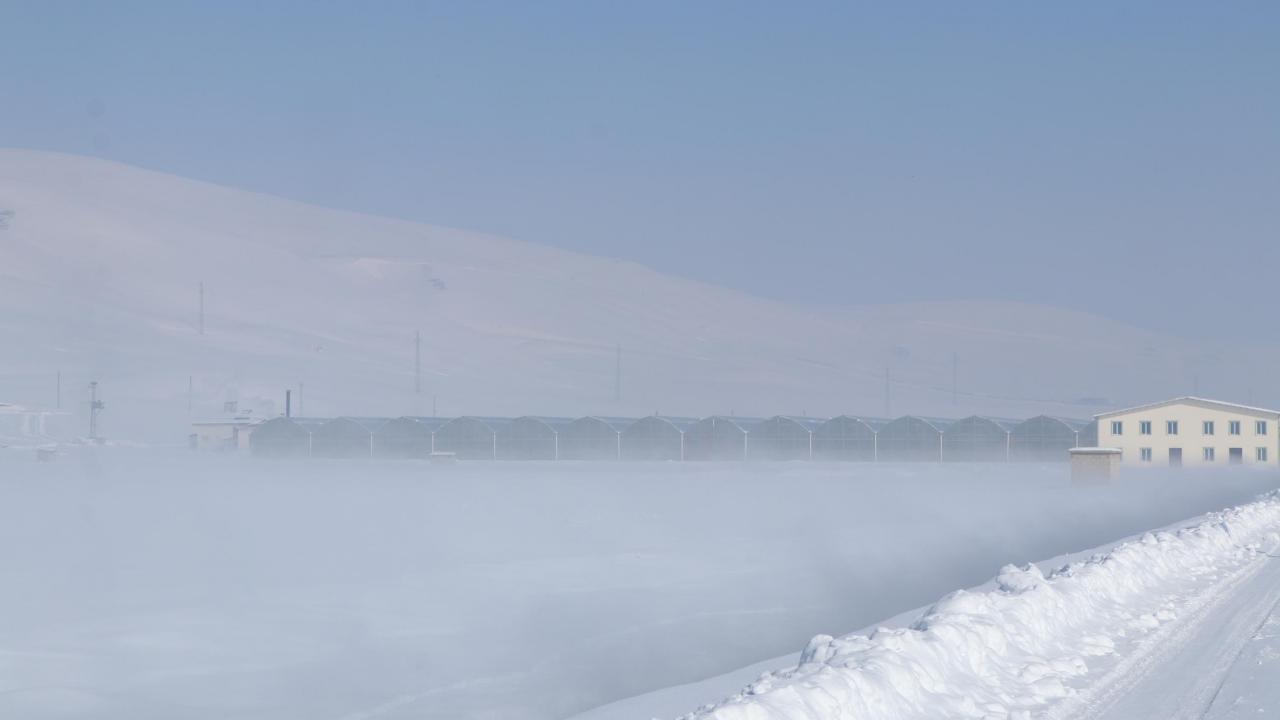 Van'ın Çaldıran ilçesinde gündüz hava sıcaklığı sıfırın altında 25, geceleri ise eksi 40 derece olarak ölçülürken jeotermal enerji ile ısıtılan seralarda üretime devam ediliyor.
