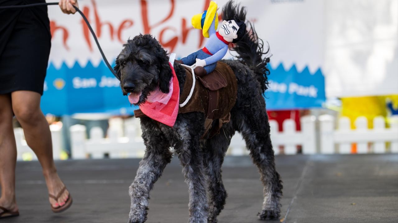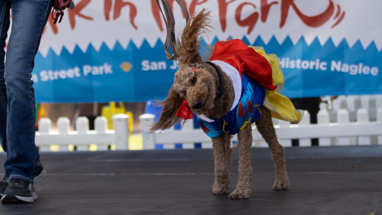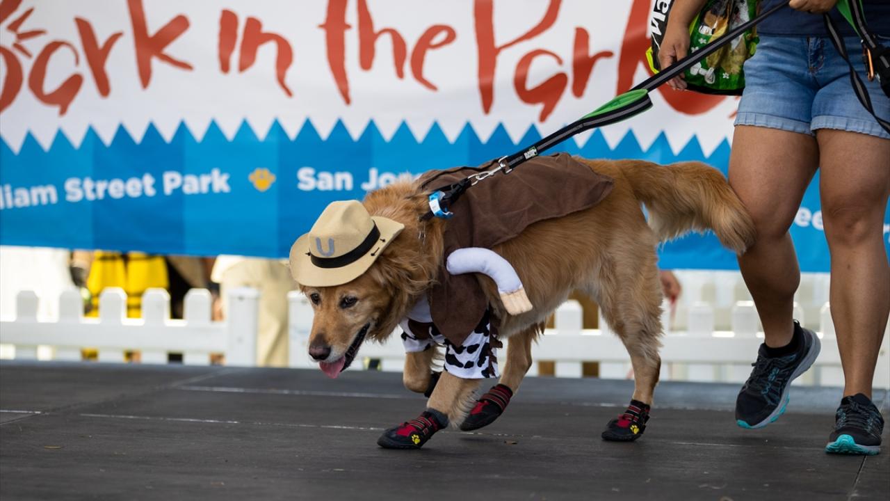 ABD'nin California eyaletine bağlı San Jose kentinde yer alan William Street Park'ta köpek kostümü yarışması düzenlendi. Farklı kostümler ile podyuma çıkan köpekler güzel görüntüler oluşturdu.