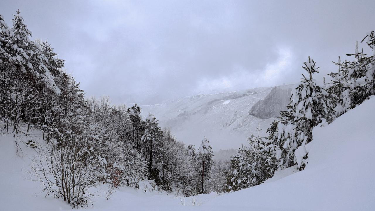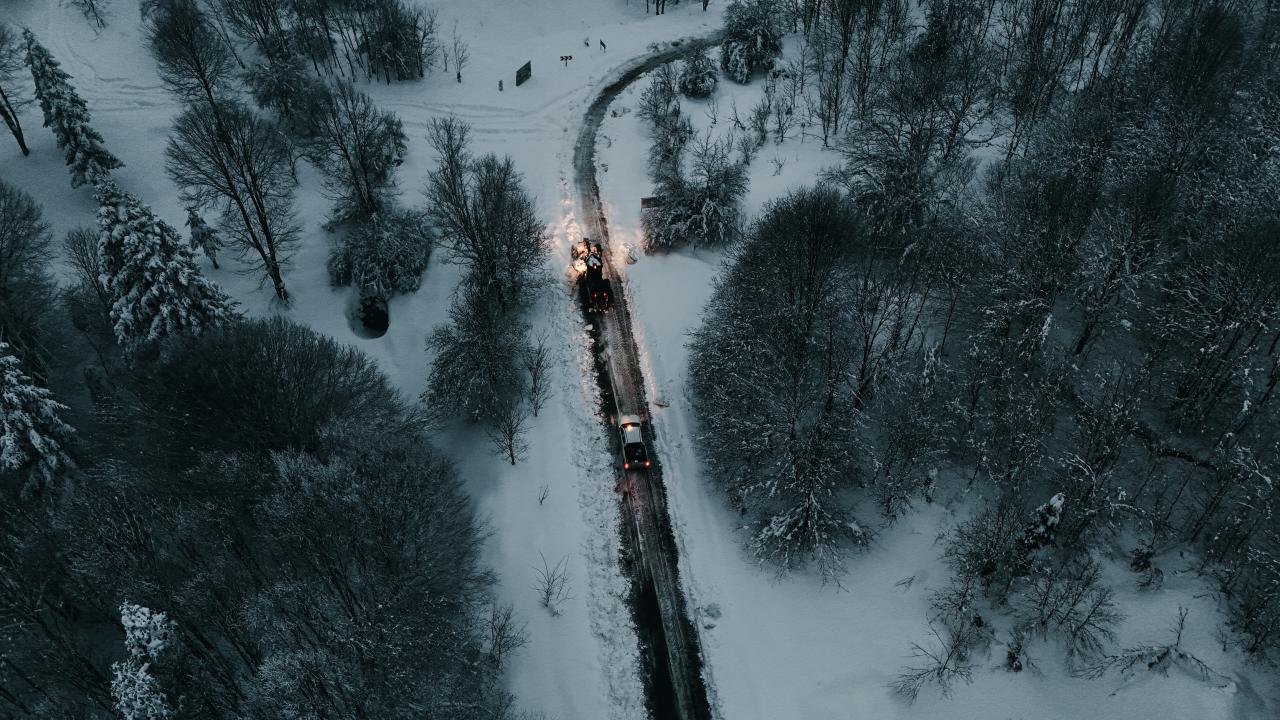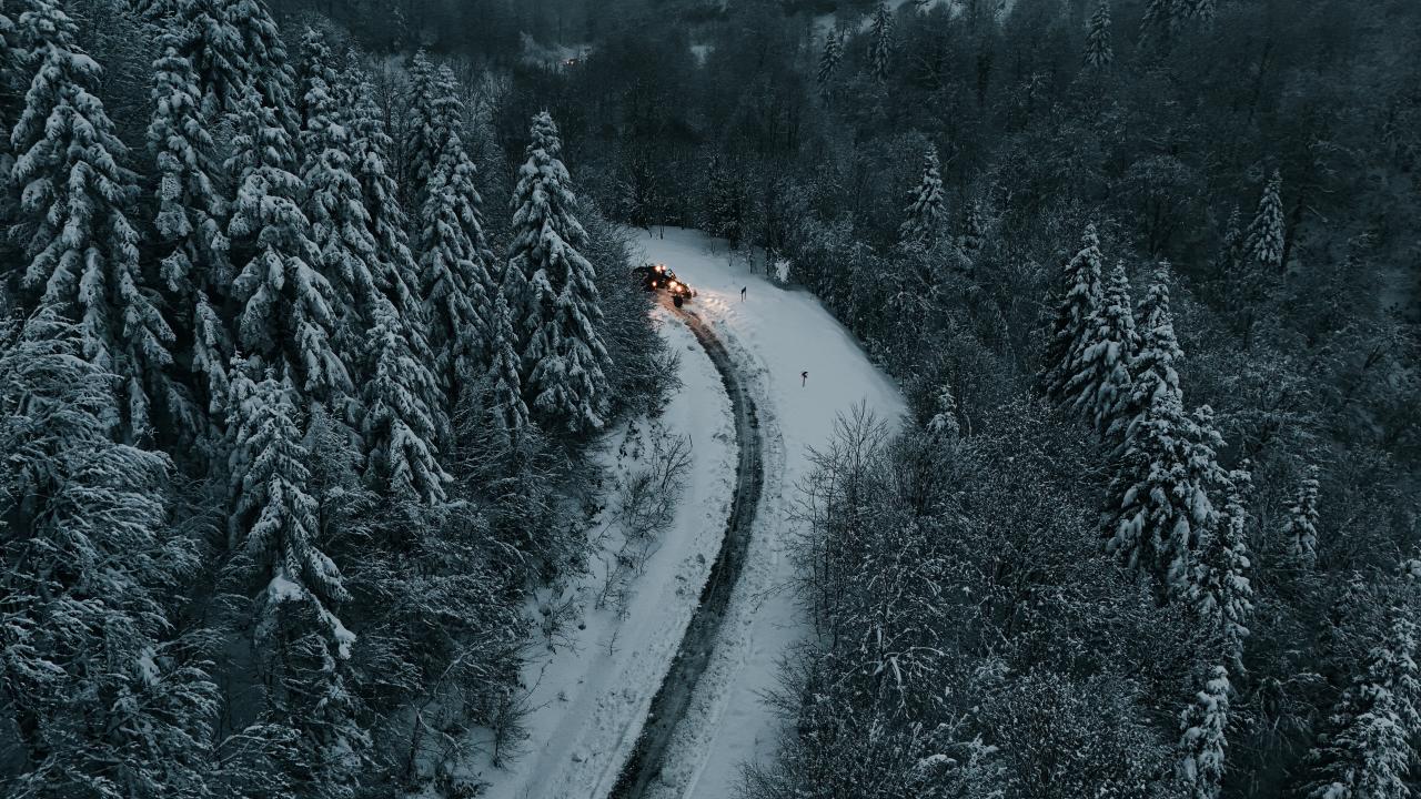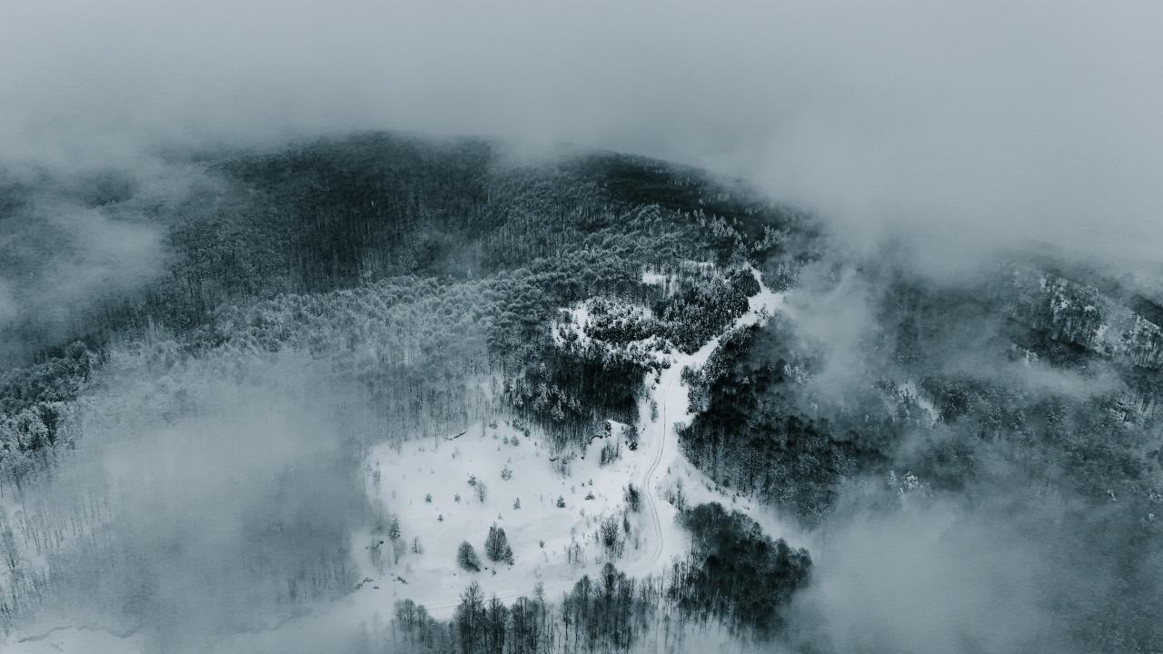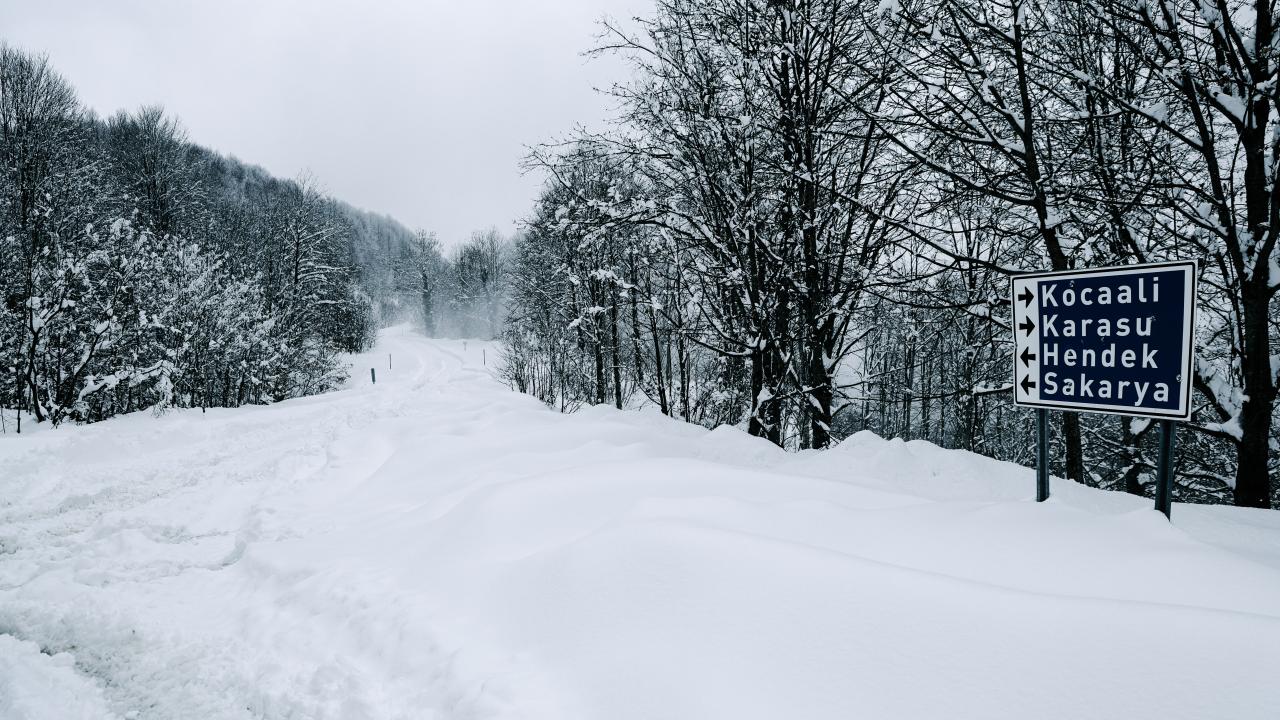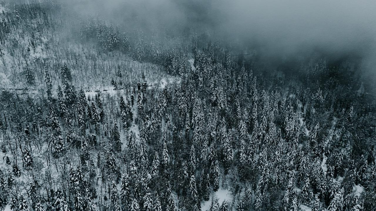 Sakarya'nın Kocaali ve Hendek ilçeleri arasında bulunan 900 rakımlı Çam Dağı'nda karla kaplanan ormanlar, FPV dron ile görüntülendi.