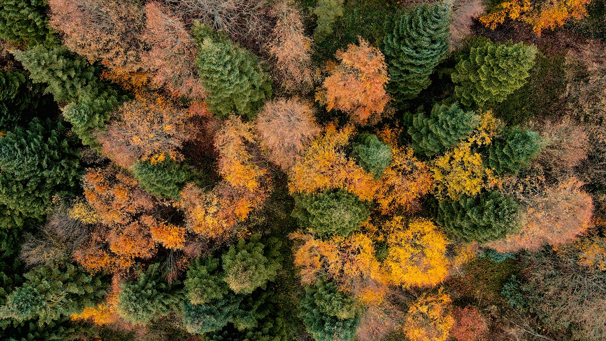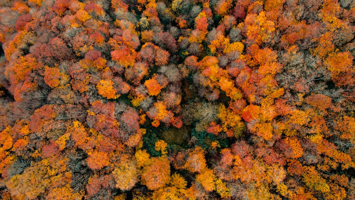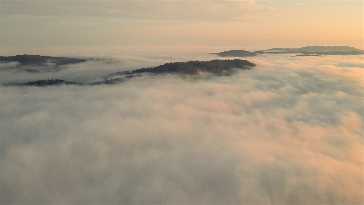 Çam Dağı`ndaki renk cümbüşü ve sis manzarası, dronla da görüntülendi.