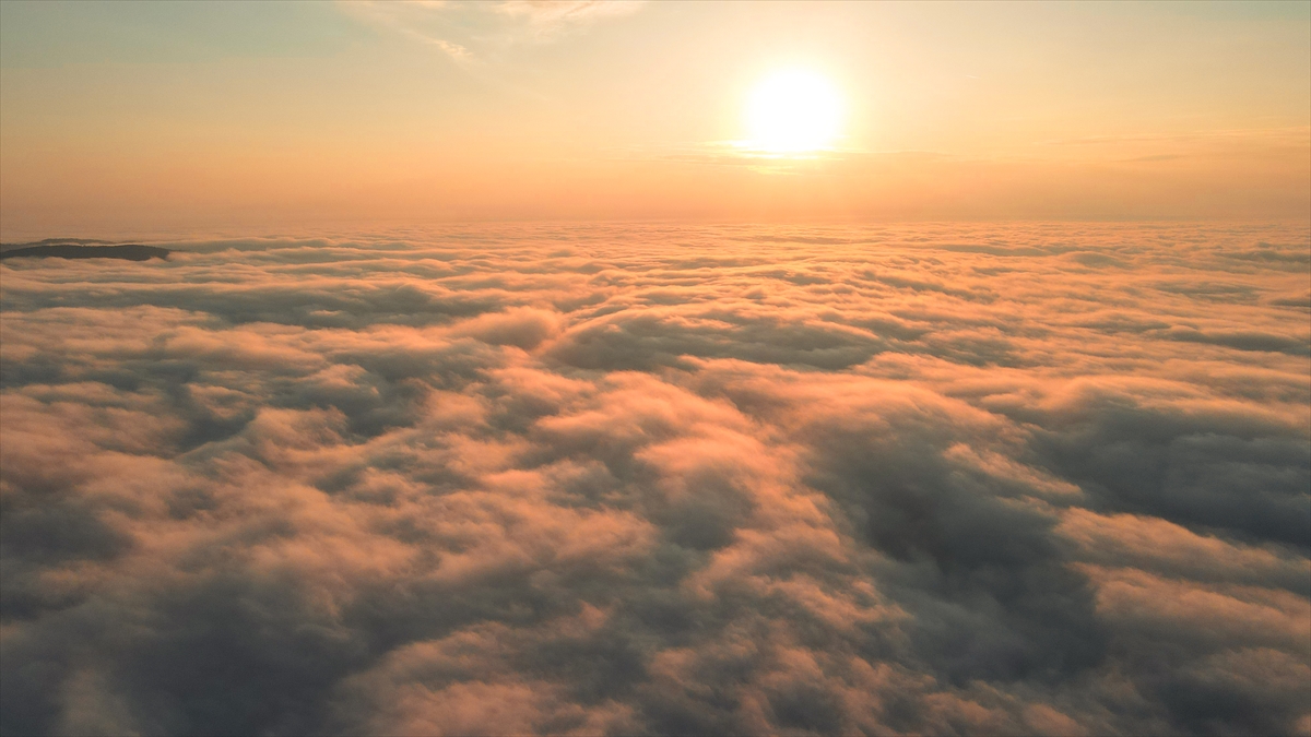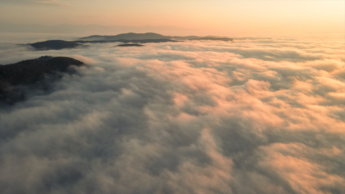 Dağın eteklerine tırmanan sis, güzel görüntüler oluşturdu.