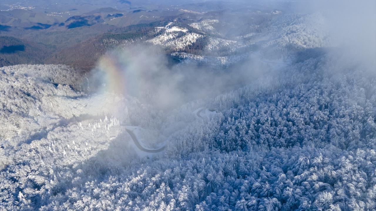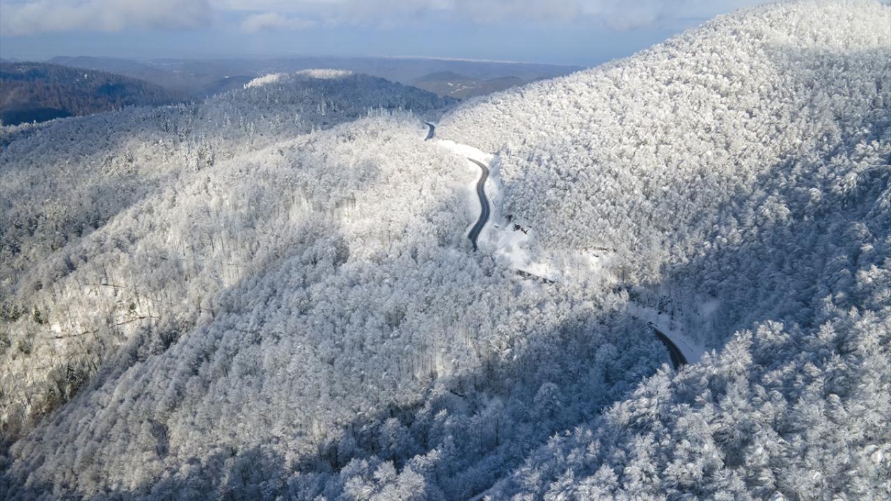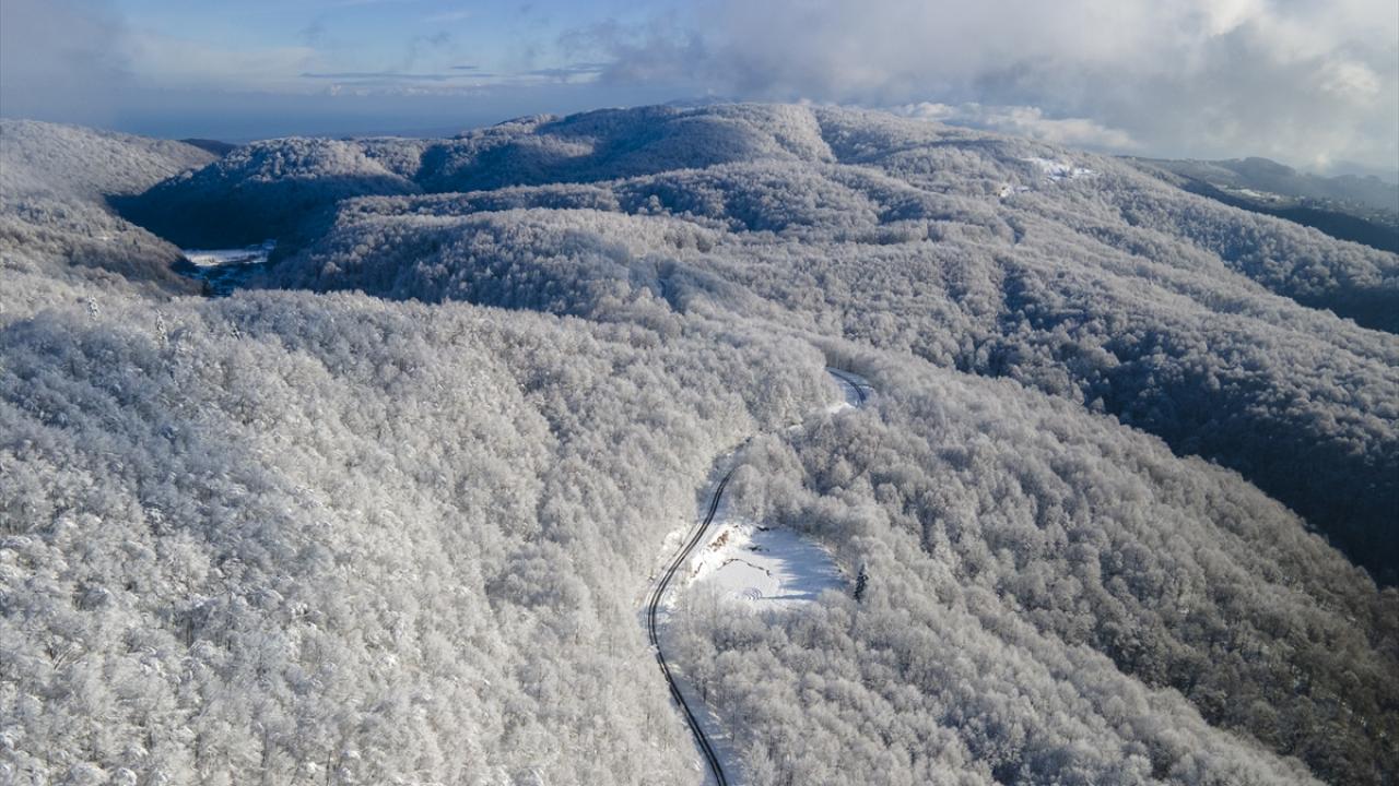 Hendek`i Kocaali ilçesine bağlayan, zengin bitki çeşitliliğiyle "doğa ve kültür yolu"nu bünyesinde barındıran 900 rakımlı Çam Dağı da yağışın ardından beyaza büründü.