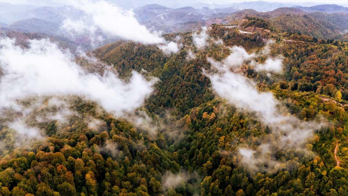 Sakarya'nın Kocaali ve Hendek ilçeleri arasında yer alan Çam Dağı'nda sonbaharın gelmesiyle sarı, kahverengi ve kızılın tonları hakim olmaya başladı. Çam Dağı'nın sonbahar manzarası, dron ile görüntülendi.