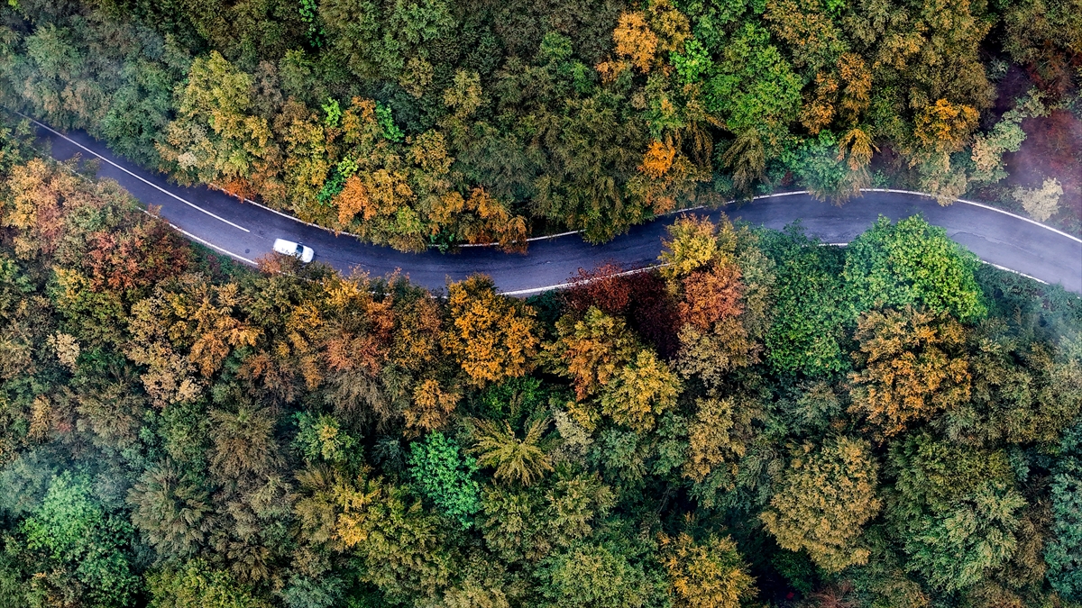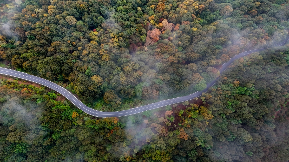 Sakarya`nın Kocaali ve Hendek ilçeleri arasında yer alan Çam Dağı`nda sonbaharın renk cümbüşü ve sis bulutu havadan görüntülendi.