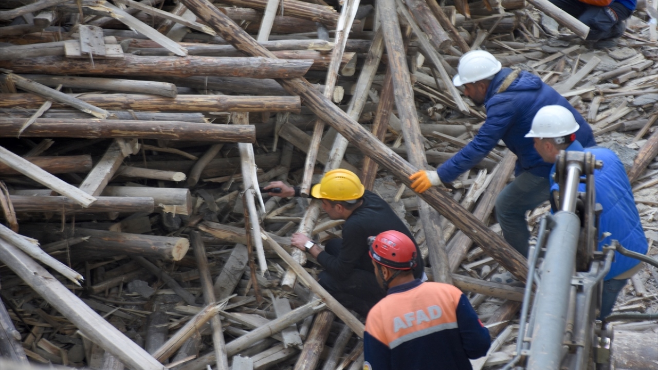 AFAD, itfaiye ve arama kurtarma ekipleri tarafından başlatılan arama çalışmaları kesintisiz devam ederken, bir yandan da tahtalar çıkarılıyor.