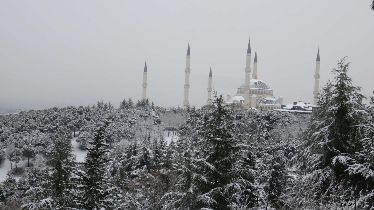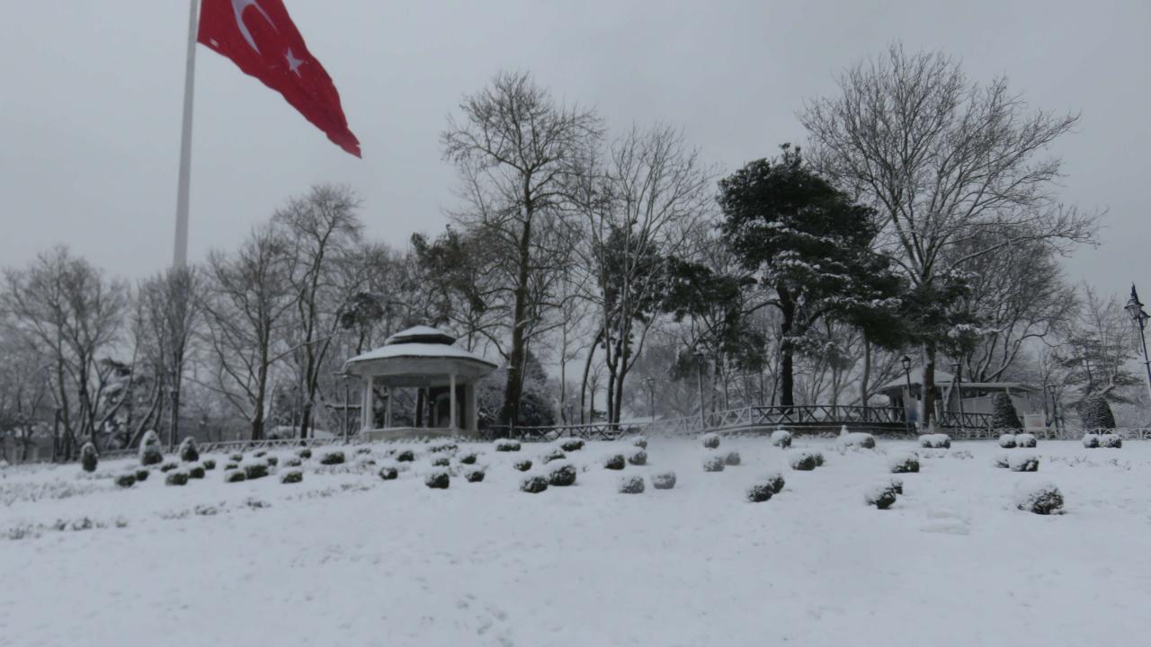 Çamlıca Tepesi`nde kartpostallık manzaralar ortaya çıktı. Kar yağışının etkisiyle Çamlıca Tepesi beyaza büründü.