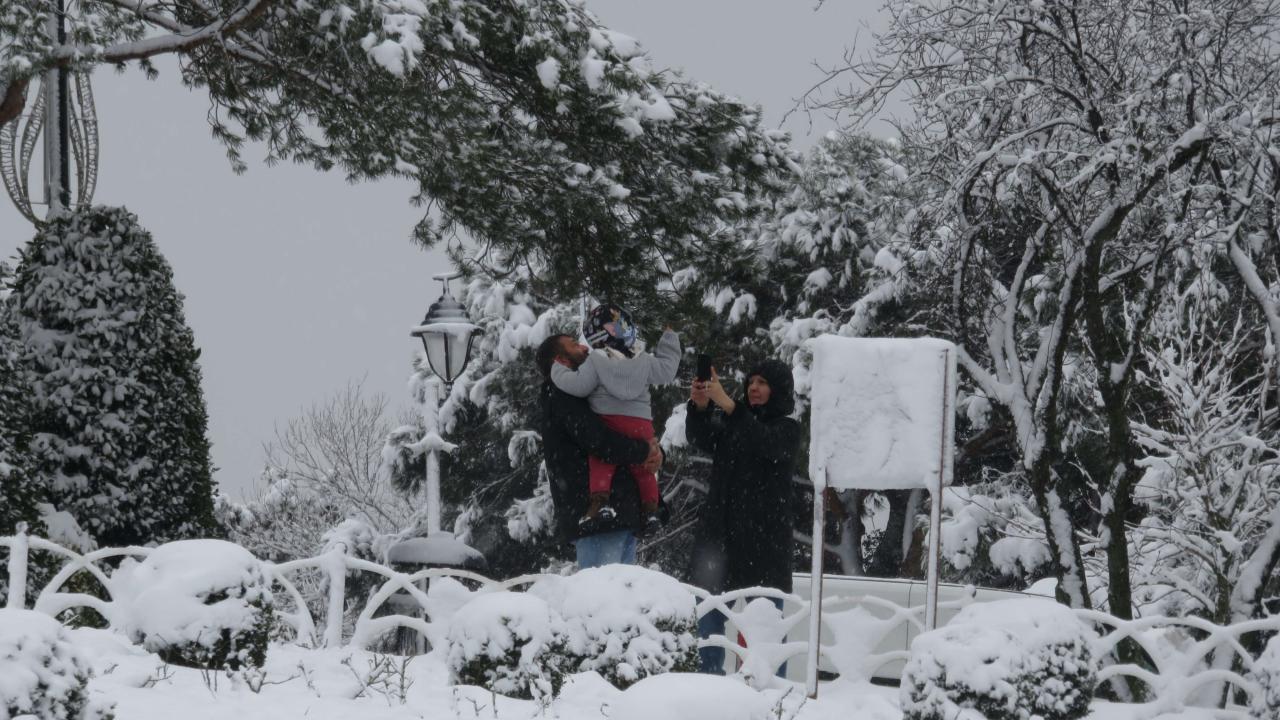 İstanbul'da etkili olan kar yağışı Çamlıca Tepesi'nde kartpostallık manzaralar ortaya çıkardı. Kimi hatıra fotoğrafı çektirirken, kimisi de yürüyüş yaptı. Kar topu oynayan çocuklar çok eğlediklerini söyledi.