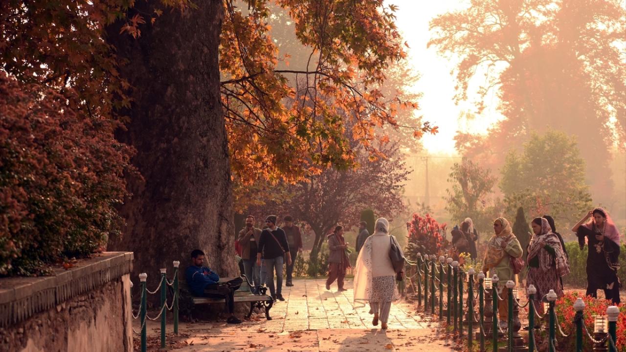 Şalimar Babür Bahçesi ve çevresindeki alanlarda, özellikle çınar ağaçlarının sarıdan kızıla dönen yapraklarıyla doğa adeta renk cümbüşüne dönüştü.
