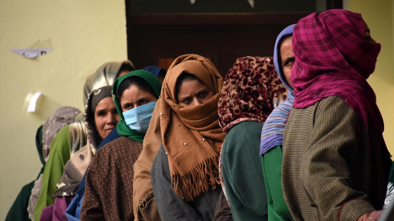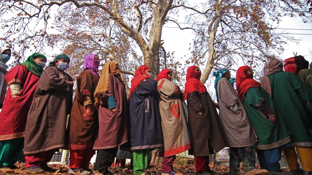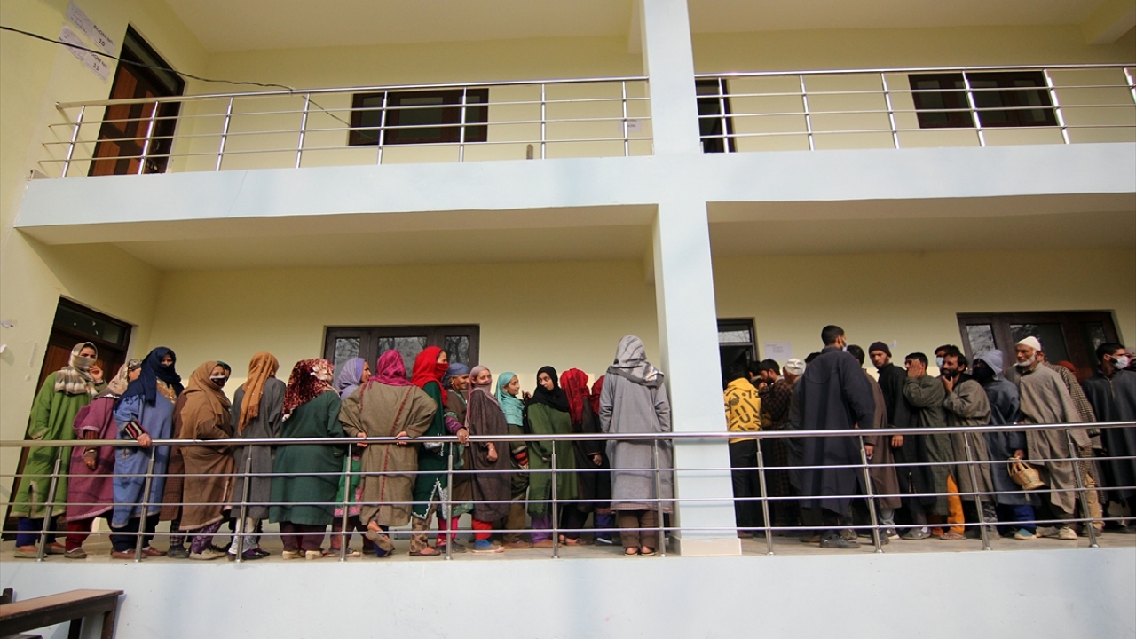 Hindistan'da 2019'da anayasa değişikliğiyle özel yönetim statüsü kaldırılan Cammu Keşmir'de, 8 aşamada yapılacak seçim, 19 Aralık'a kadar sürecek Bölge Kalkınma Konseyi seçiminin ikinci turunda, Lalpora bölgesindeki vatandaşlar oy kullanmak üzere sırada bekledi.