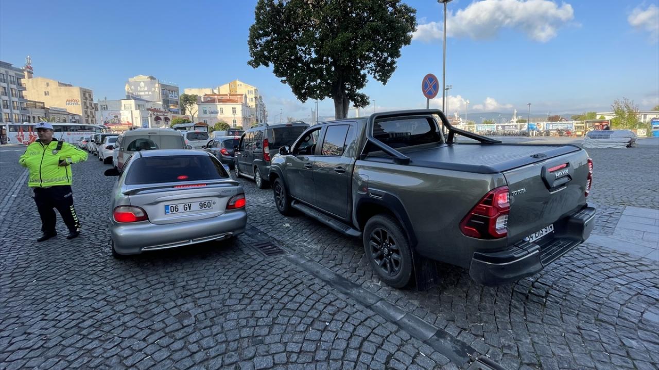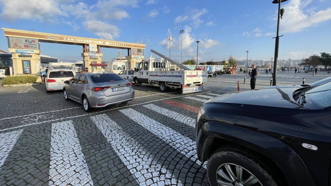 Çanakkale il merkezi ile Eceabat ve Kilitbahir iskelelerinde bekletilen araçlar sırayla feribota alınmaya başlandı.