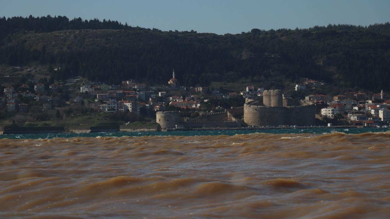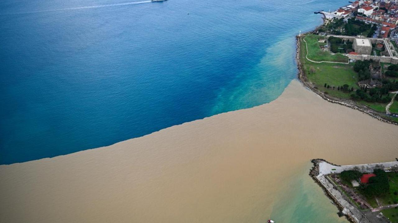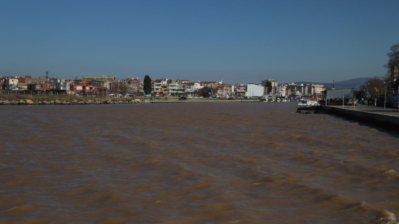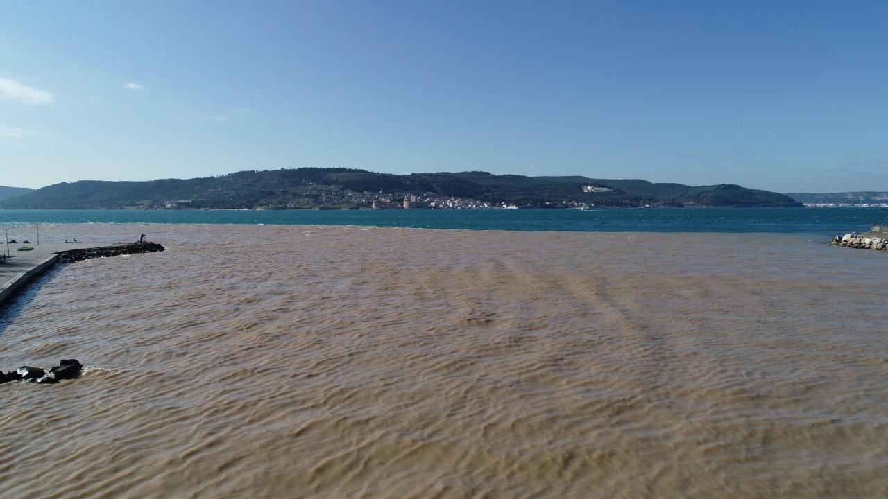 Çamurlu su, boğaza yayılırken, denizin rengi kahverengiye döndü.