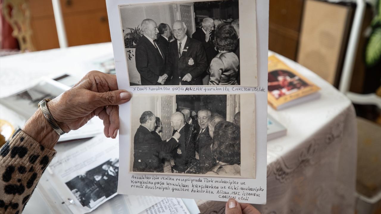 "Atatürk`ün yanındayken babam, bir alan var, nöbetçi subaylar için toprak kazılmış, içinde bir iskemle bir de masa var. Babam da nöbette o sırada. Bir askerimiz geliyor ve Anzak askeri yakalamış. Üstü başı perişan, parçalanmış. Babam kaputunu çıkarıyor, Anzak askerinin omzuna koyuyor. Orada bir tenekenin içinde ateş yanıyor, üstünde de su kaynıyor. Bitki çayı gibi bir şey var, Anzak askerine veriyor içmesi için. Babam Almanca konuşuyor, o İngilizce... Babam `Üzülmeyin, esir mübadelesi yapılacak` diyor. Anzak askeri ayağa kalkıyor, `Benim size verecek hiçbir şeyim yok` diyor. Sonra kendi ceketinin bir düğmesini koparıyor ve teşekkür olarak kendisine uzatıyor. Babam da o düğmeyi alıyor ve yıllarca saklıyor."