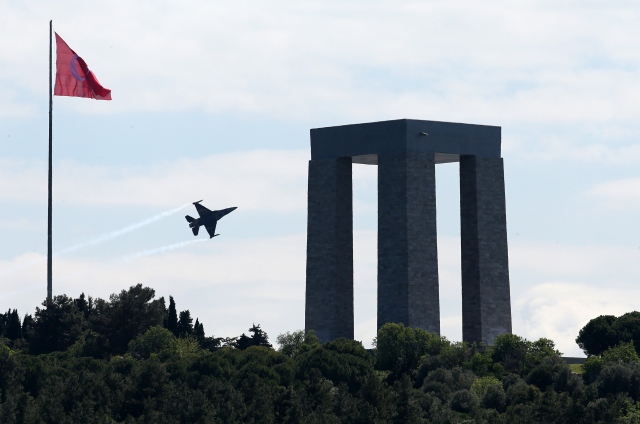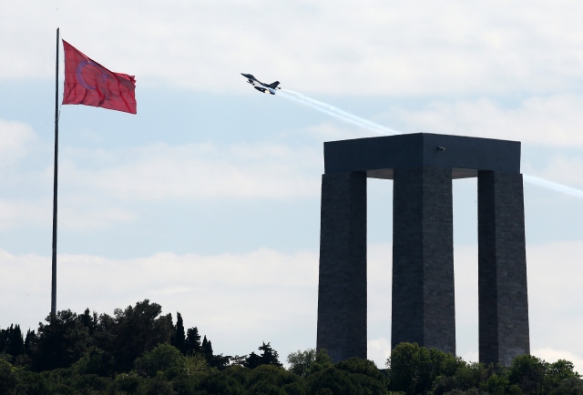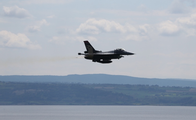 Çanakkale Kara Savaşları`nın 102. yıl dönümü dolayısıyla Dünyada F-16 jet uçağıyla gösteri yapabilen sayılı akrobasi timlerinden Hava Kuvvetleri Komutanlığının SOLOTÜRK ekibi de gösteri yaptı.