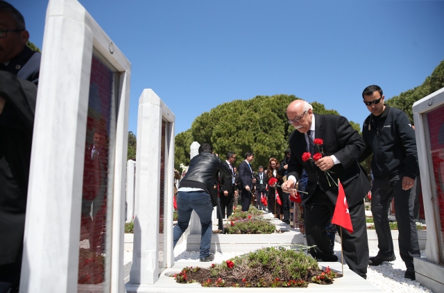 Kültür ve Turizm Bakanı Nabi Avcı, Çanakkale Kara Savaşları`nın 102. yıl dönümü dolayısıyla düzenlenen törenlere katılarak şehitliğe karanfil bıraktı.