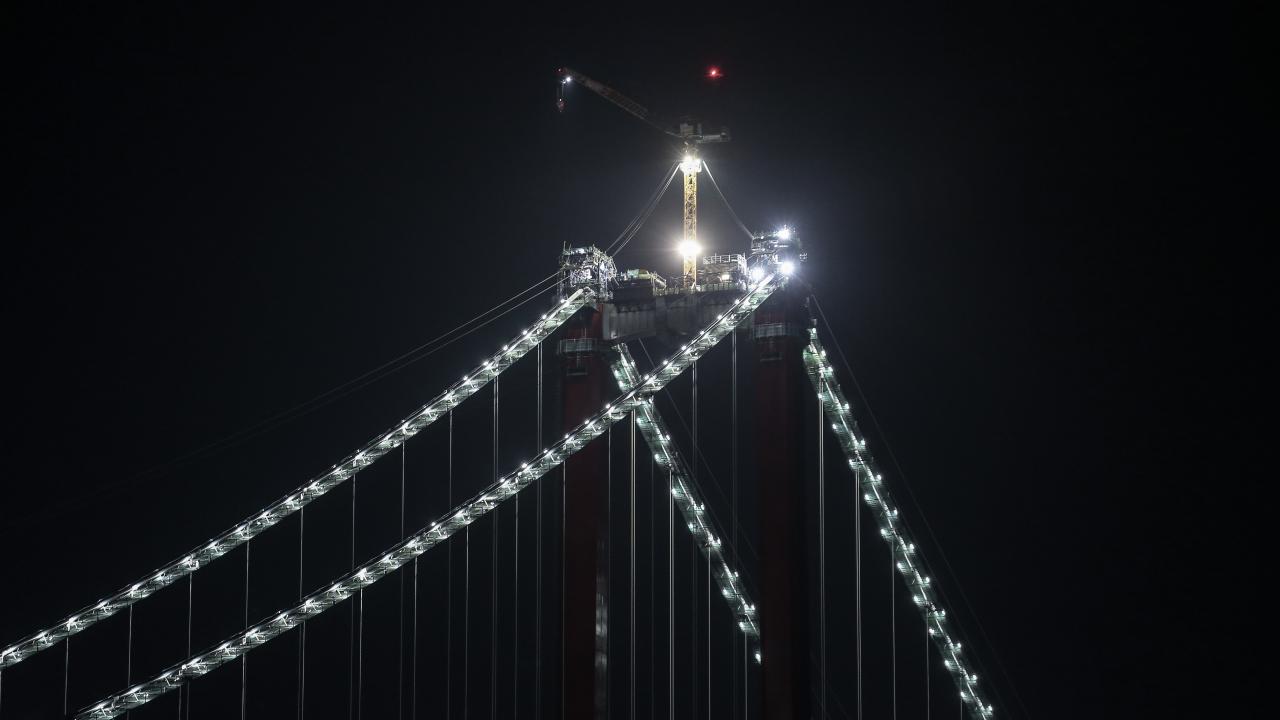 "Çanakkale Boğazı`nın gerdanlığı" olarak nitelendirilen proje için şantiyelerde Ulaştırma ve Altyapı Bakanlığı Karayolları Genel Müdürlüğü görevlilerinin yanı sıra 559`u mühendis, 4 bin 62 personel ile 550 iş makinesi çalıştı.