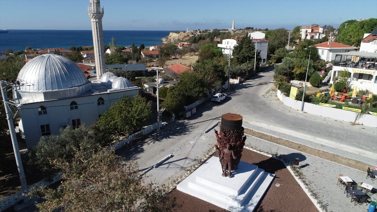 Dünyanın en şiddetli çarpışmalarının yaşandığı Tarihi Gelibolu Yarımadası'ndaki Seddülbahir Kalesi'nin kazı ve restorasyon çalışmalarında ortaya çıkan ve envanter niteliği olmayan savaş materyalleriyle yapılan "Kanlı Bomba Anıtı" köy meydanına dikildi.