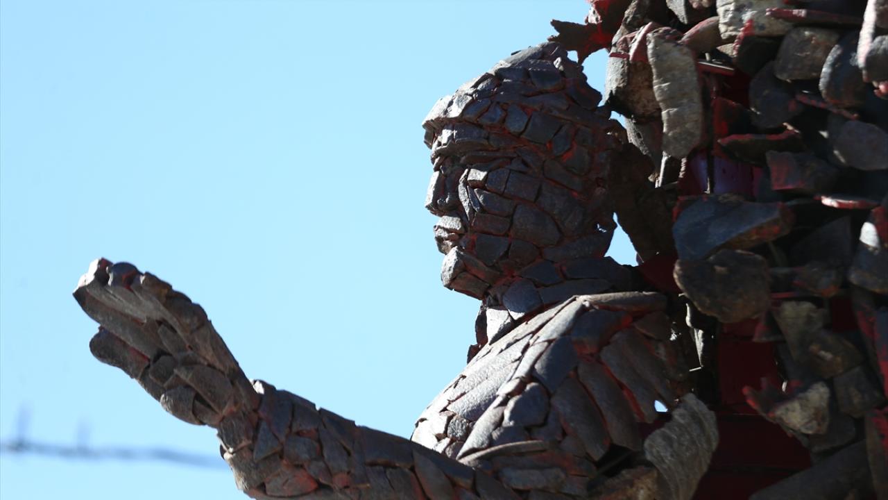 Yapımı 3 ay süren ve Mehmetçiğin cesaretini simgeleyen anıtta, bombanın önünde "dur" işareti yapan Türk askeri yer alıyor.