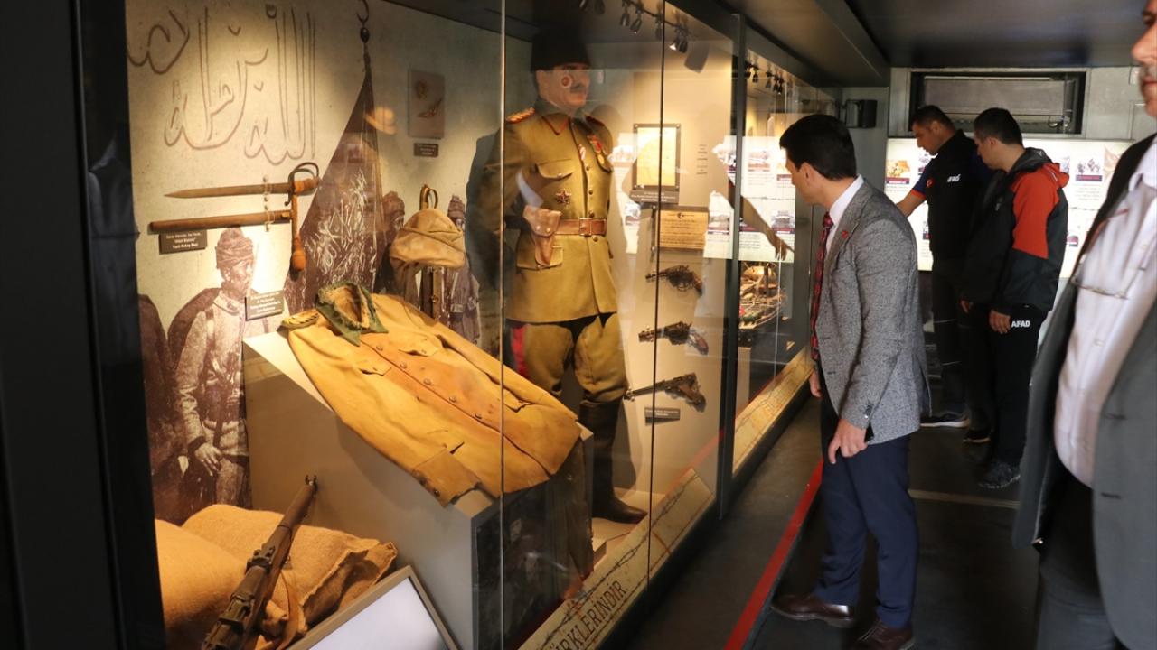 "Çanakkale Savaşı`ndan kalmış askeri ekipmanlar, üniformalar, yine cephelerden şehitlerimizin annelerine yazmış olduğu mektupları sergiliyoruz. 2 Temmuz 2020`de yola çıktık. 81 ile gittik. İllere iki defa gittik ve şu anda üçüncü turumuza başladık. Şu zamana kadar 200 binin üzerinde misafir ağırladık."