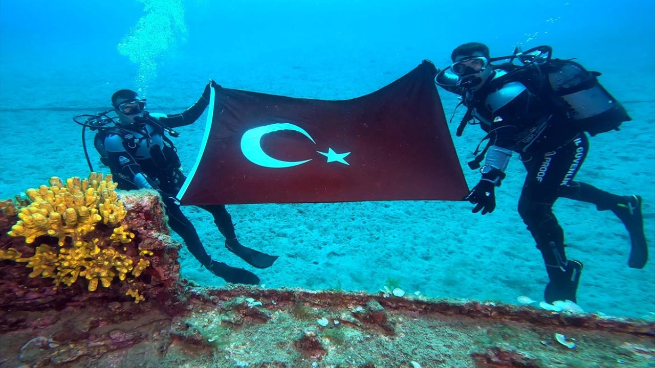 Batıkların görüntülendiği dalışta, Sahil Güvenlik Batı Marmara Grup Komutanlığı ekibi, 30 Ağustos Zafer Bayramı dolayısıyla pankart ve Türk bayrağı açtı.