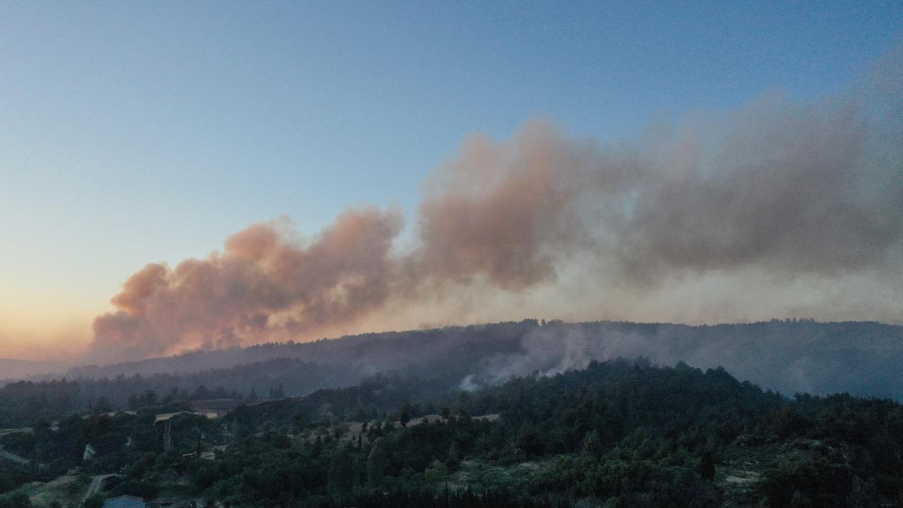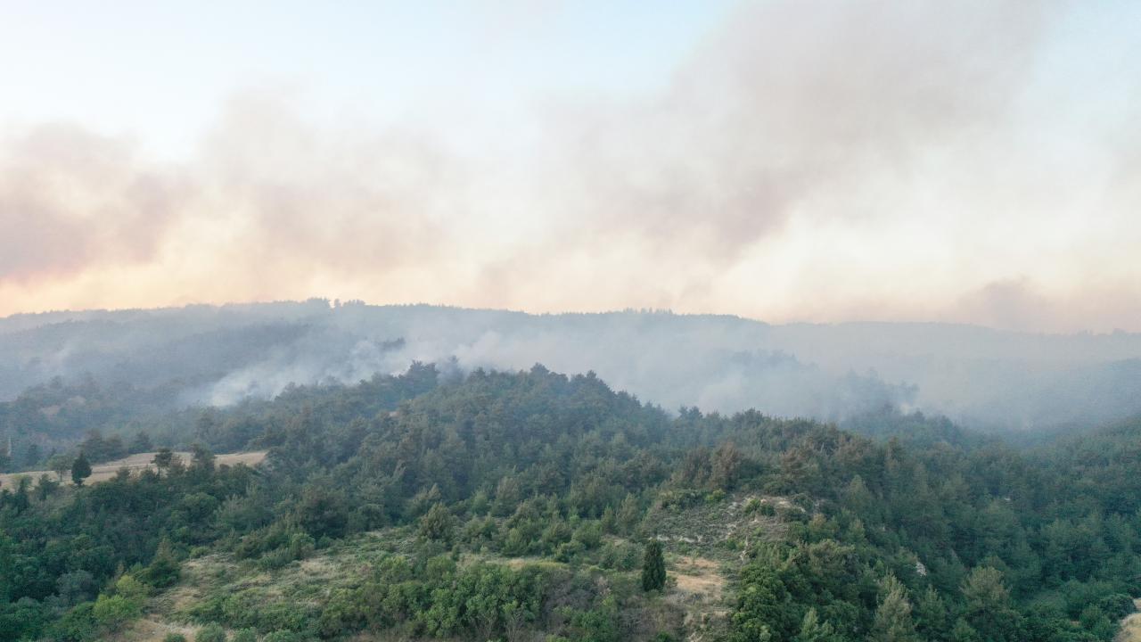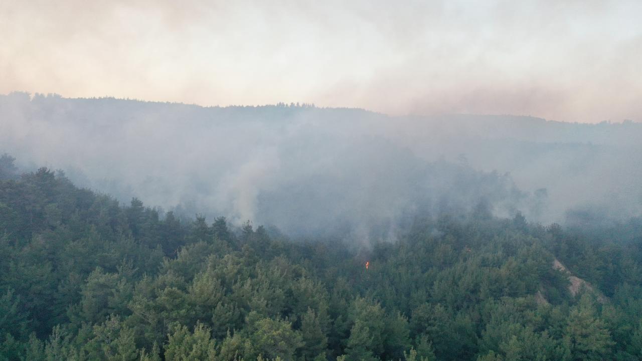 Öte yandan, yangın bölgesindeki son durum dron ile görüntülendi.