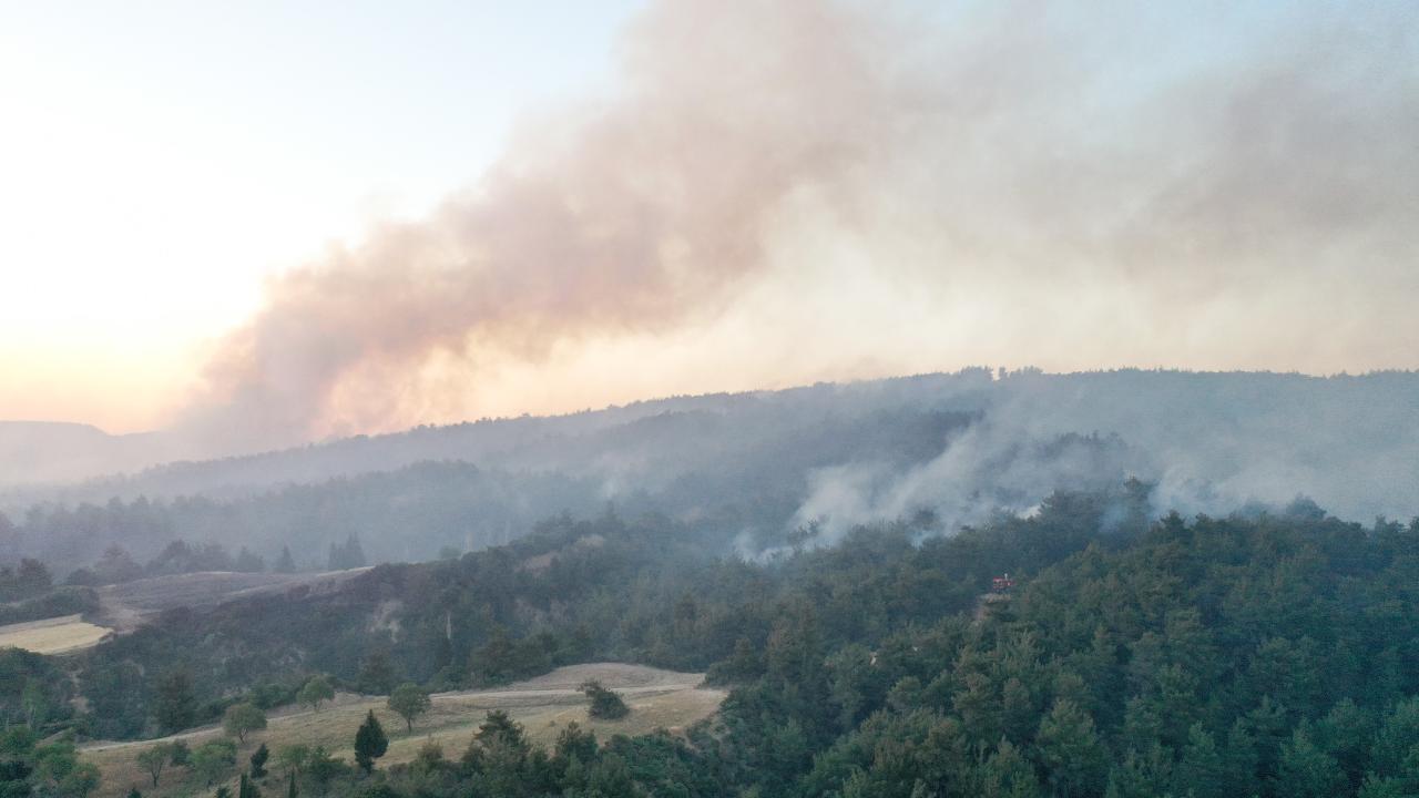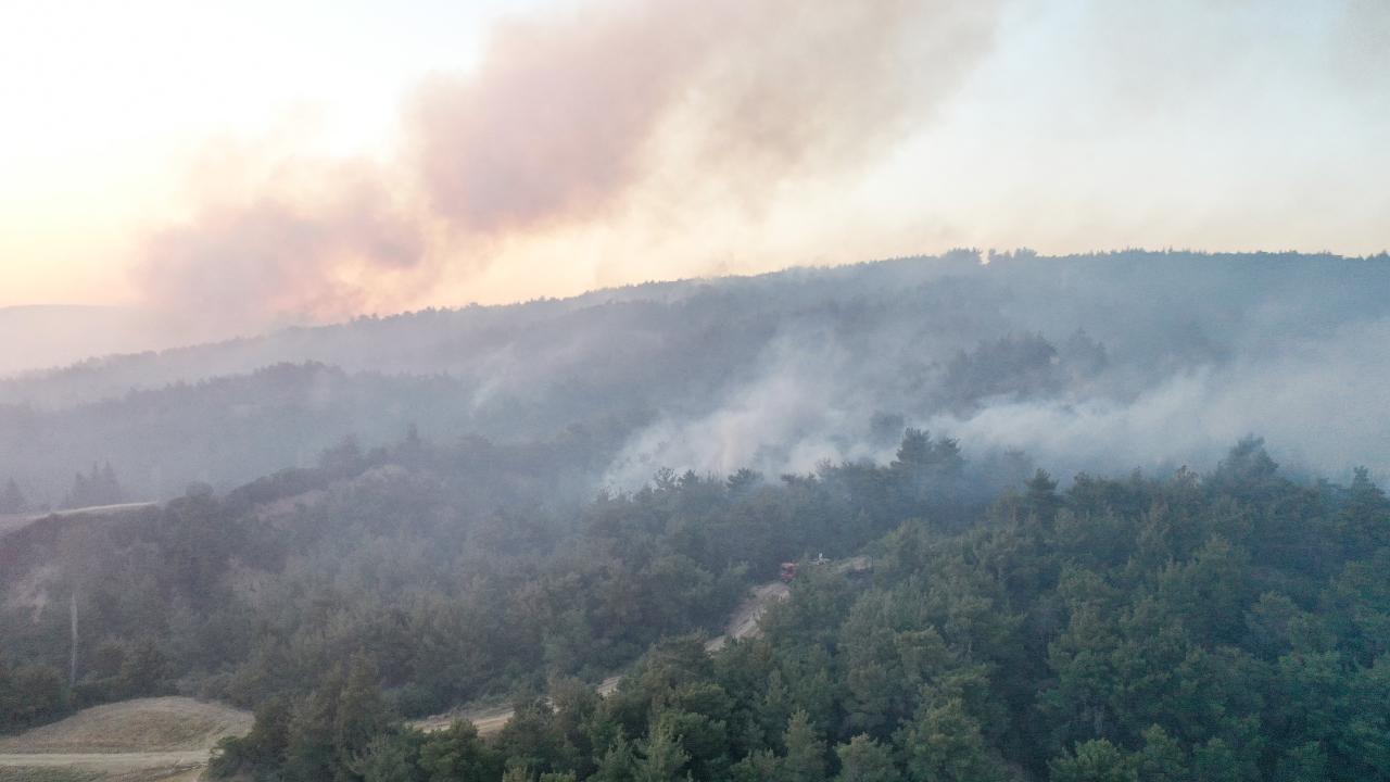 Tarihi Gelibolu Yarımadası`nda yer alan Eceabat ilçesine bağlı Kumköy köyü yakınlarında dün saat 16.05`te anızdan ormana sıçrayarak başlayan yangına müdahale, gün doğumuyla birlikte helikopter ve uçaklarla yoğunlaştı.