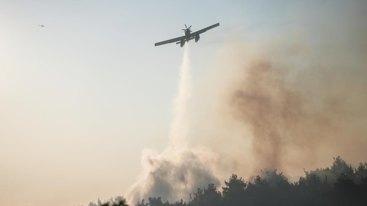 Yangına, havadan ve karadan çok sayıda araç ve personelle müdahale ediliyor.