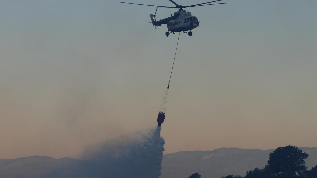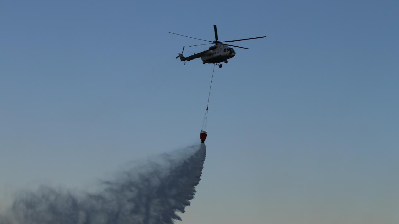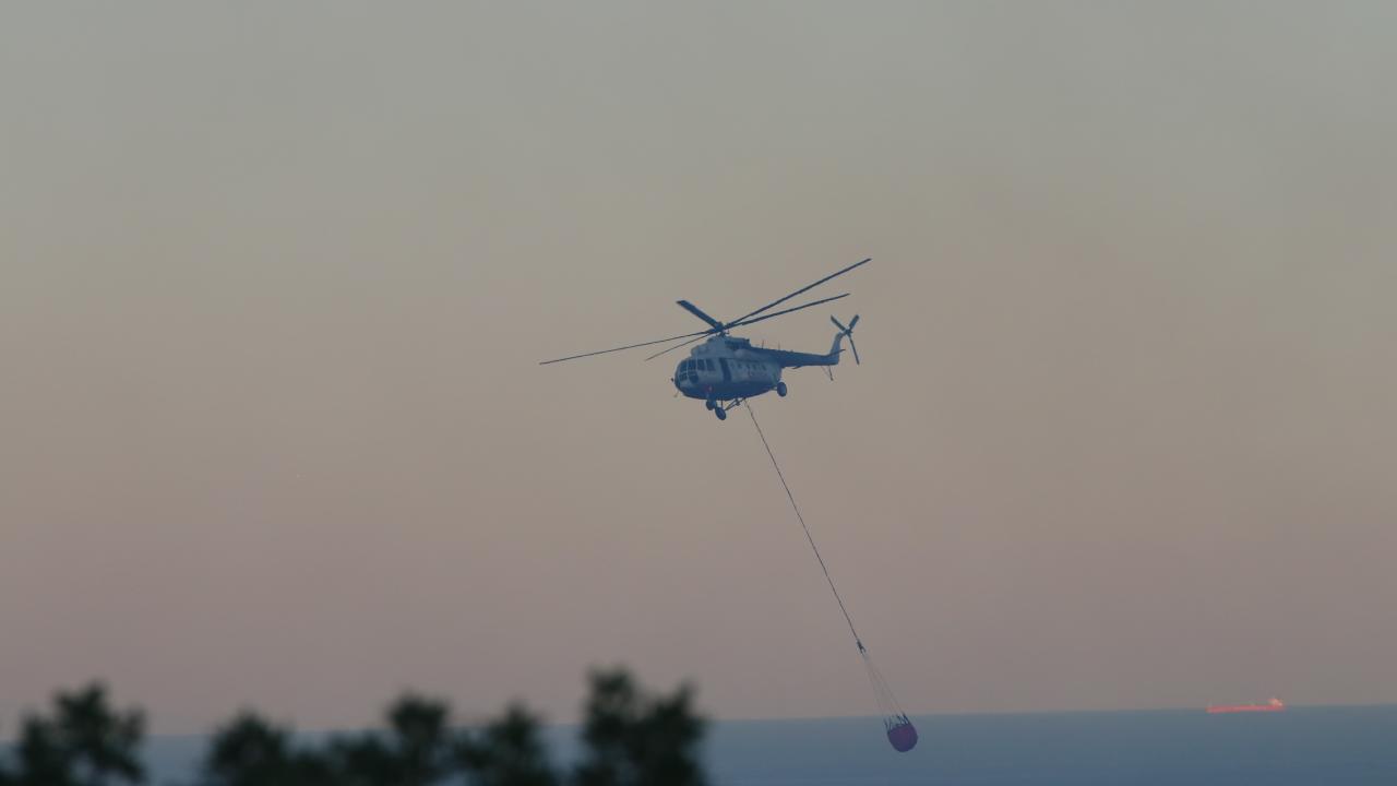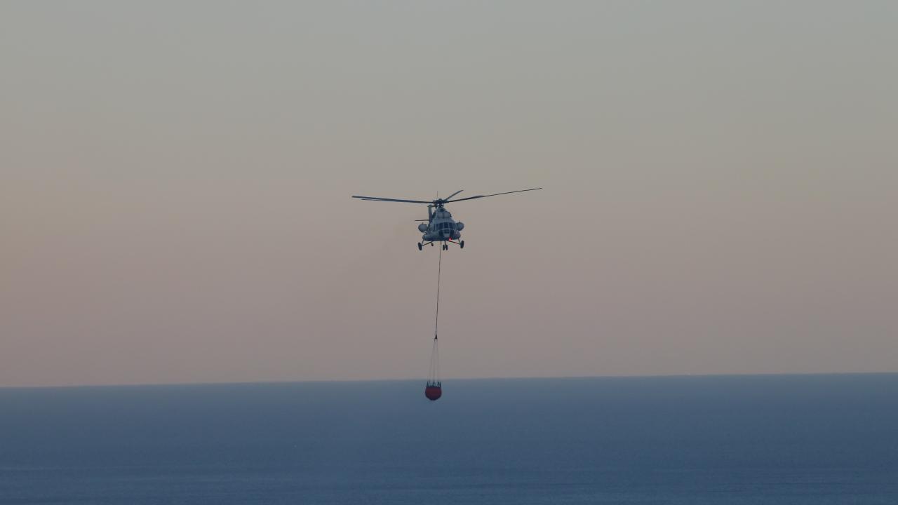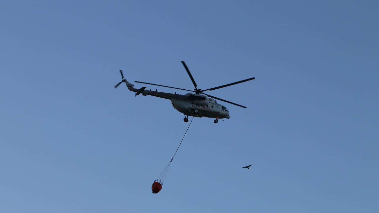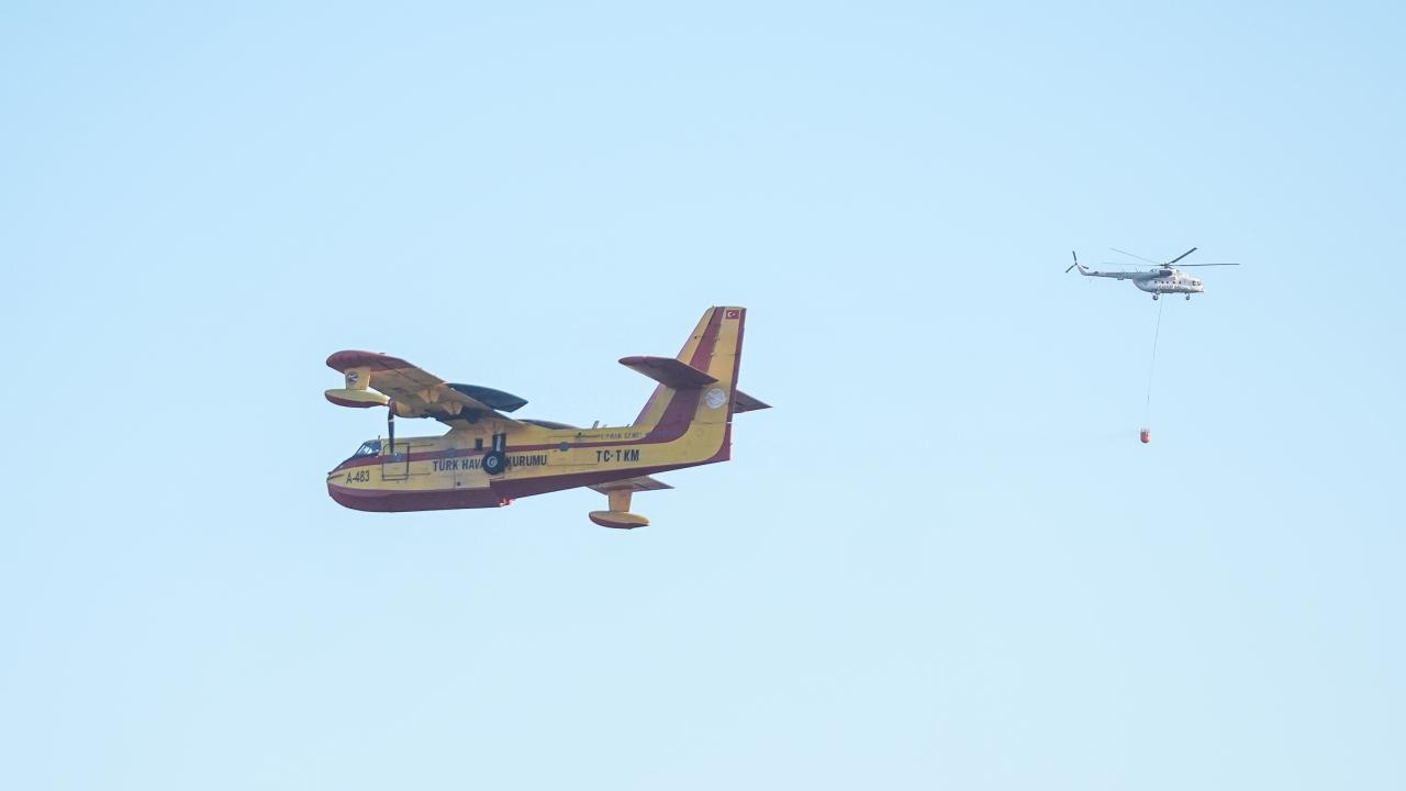 Havanın aydınlanmasıyla birlikte 2 uçak ve 2 helikopterle yangın söndürme çalışmalarına destek verilmeye başlandı.