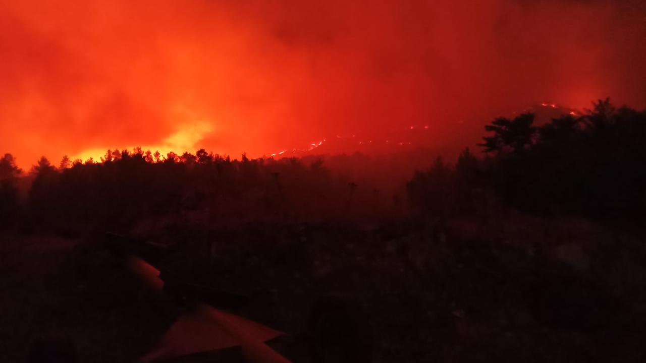 "AFAD ve jandarma ekiplerimiz tarafından Köprübaşı köyüne bağlı Hacışerifler Mahallesi`nde 6 hane, Velibeyler Mahallesi`nde 10 hane, Karaköse köyü Çamurak Mahallesi`nde 10 hane tedbir amaçlı boşaltıldı. Bu evlerde herhangi bir zarar şu an itibarıyla bulunmamaktadır. Gündüz saatlerinde hava şartları uygun olduğunda bir helikopterle havadan müdahale edilmiş, havanın kararmasıyla beraber şu an itibarıyla 495 personel, 107 araç ve iş makinesiyle yangına müdahale edilmektedir. Rüzgarın da şu an hızının azalmasıyla birlikte inşallah sabah saatlerine kadar kontrol altına almayı umuyoruz."
