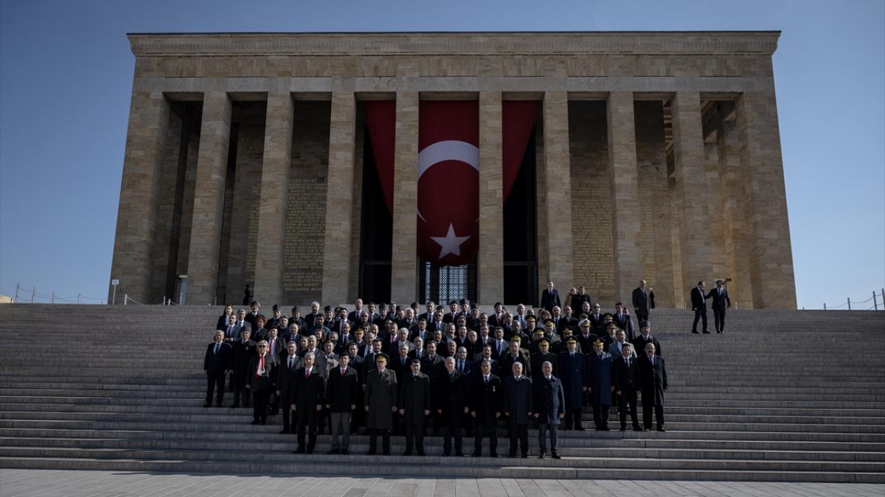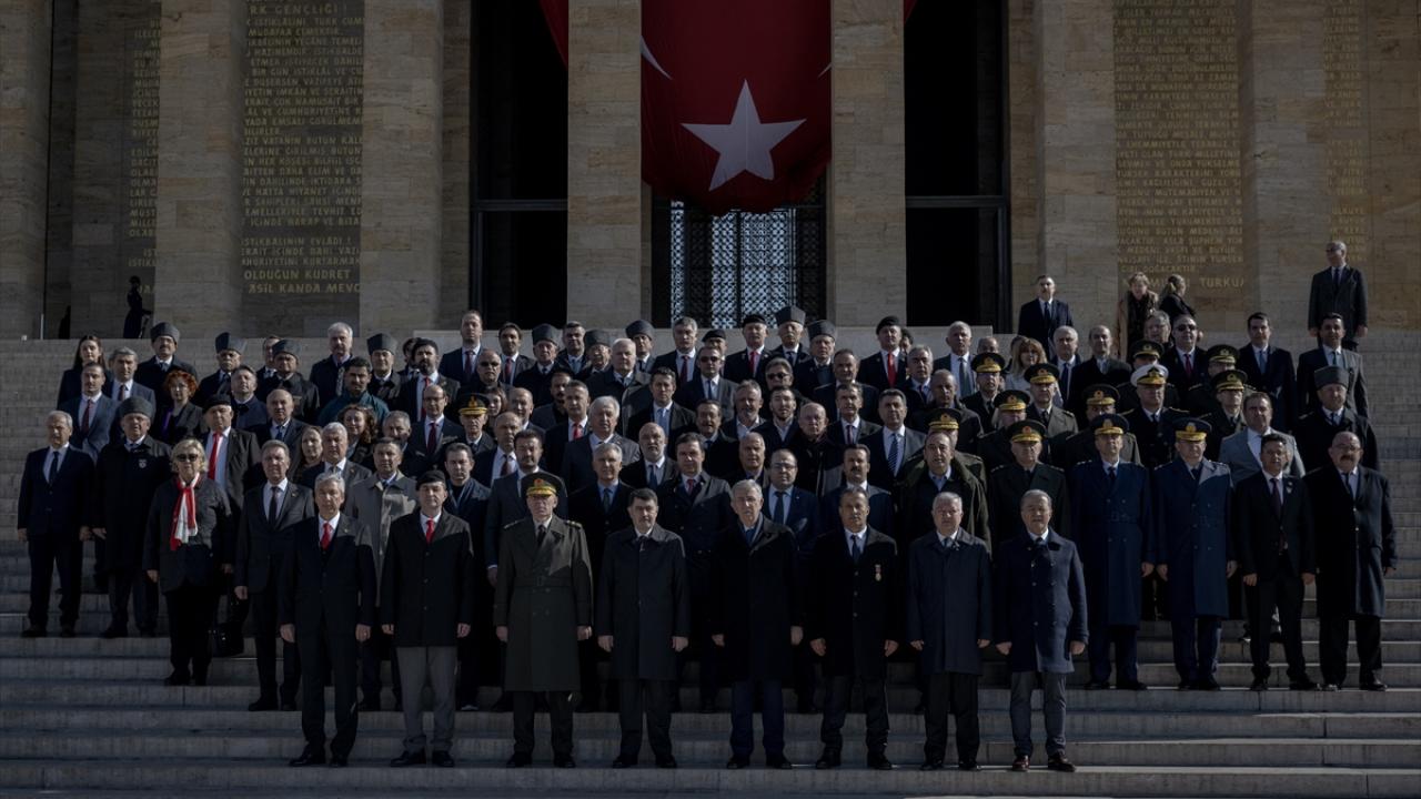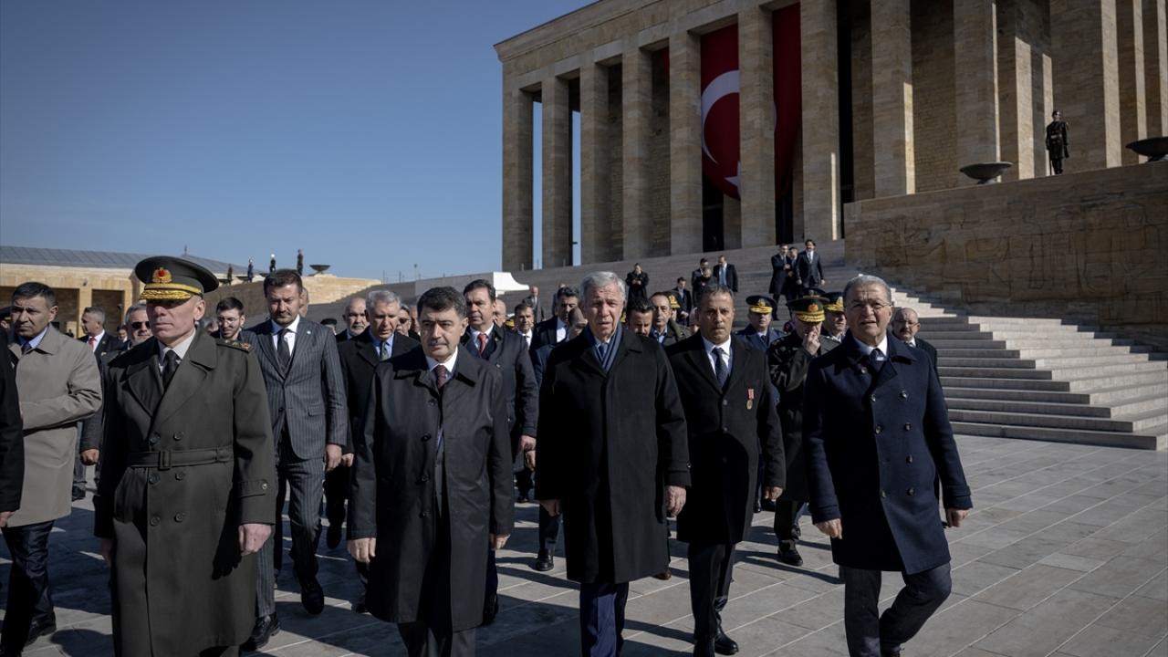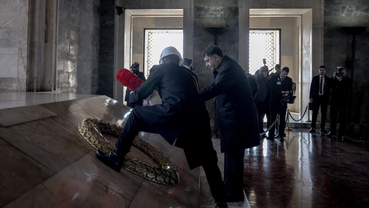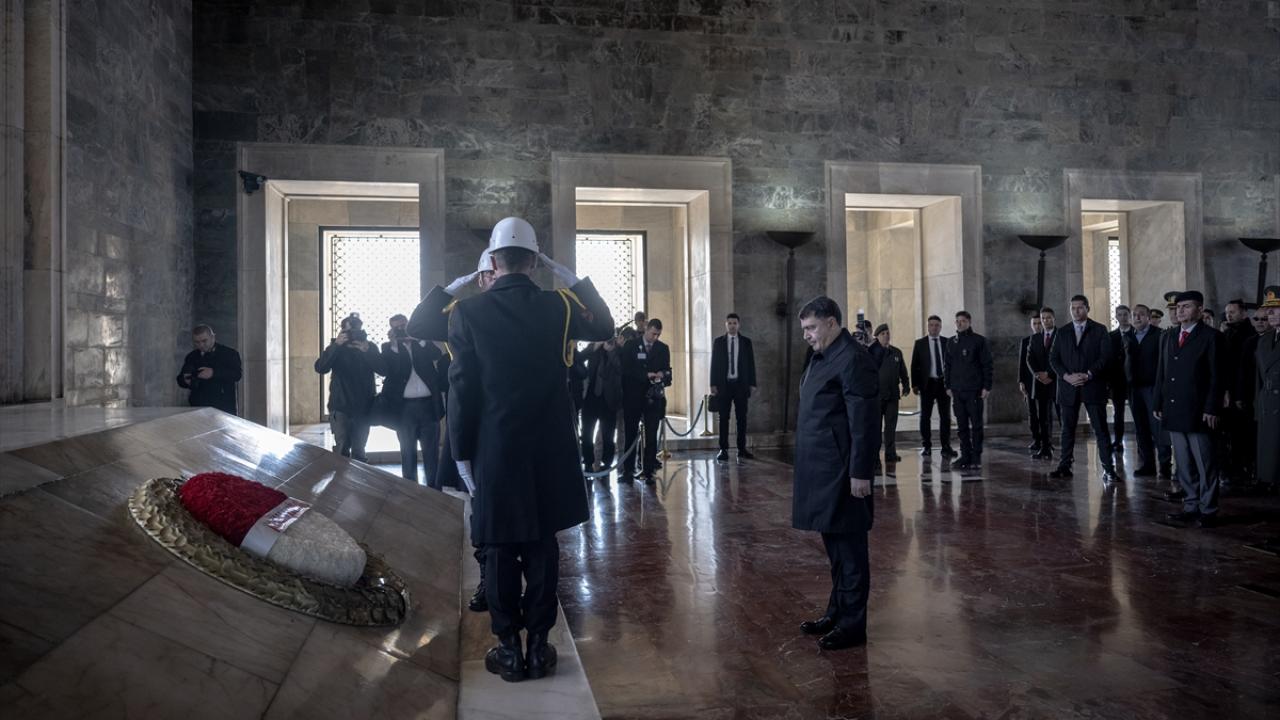 Şahin`in mozoleye çelenk bırakmasının ardından saygı duruşunda bulunuldu, İstiklal Marşı okundu.