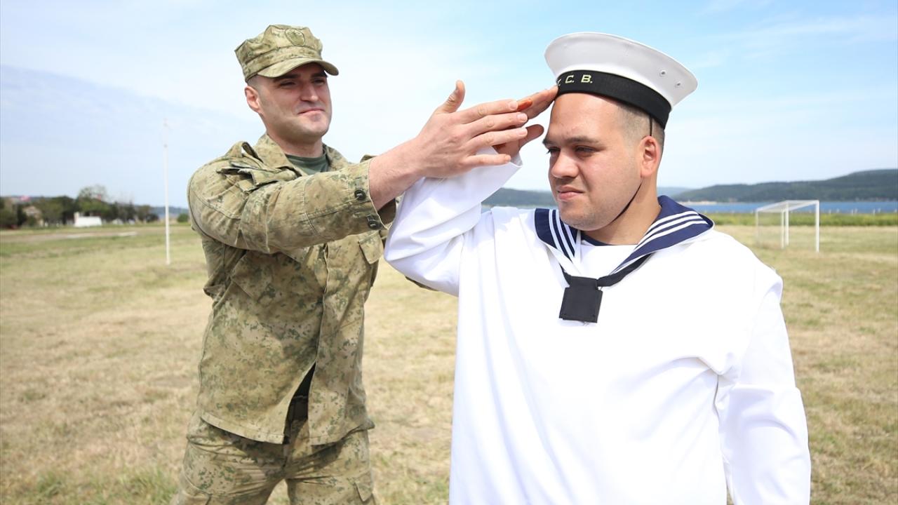 Engelli gençlerden Arda Özayabakan, gazetecilere, bir günlüğüne de olsa askerlik heyecanı yaşamaktan mutluluk duyduğunu söyledi.