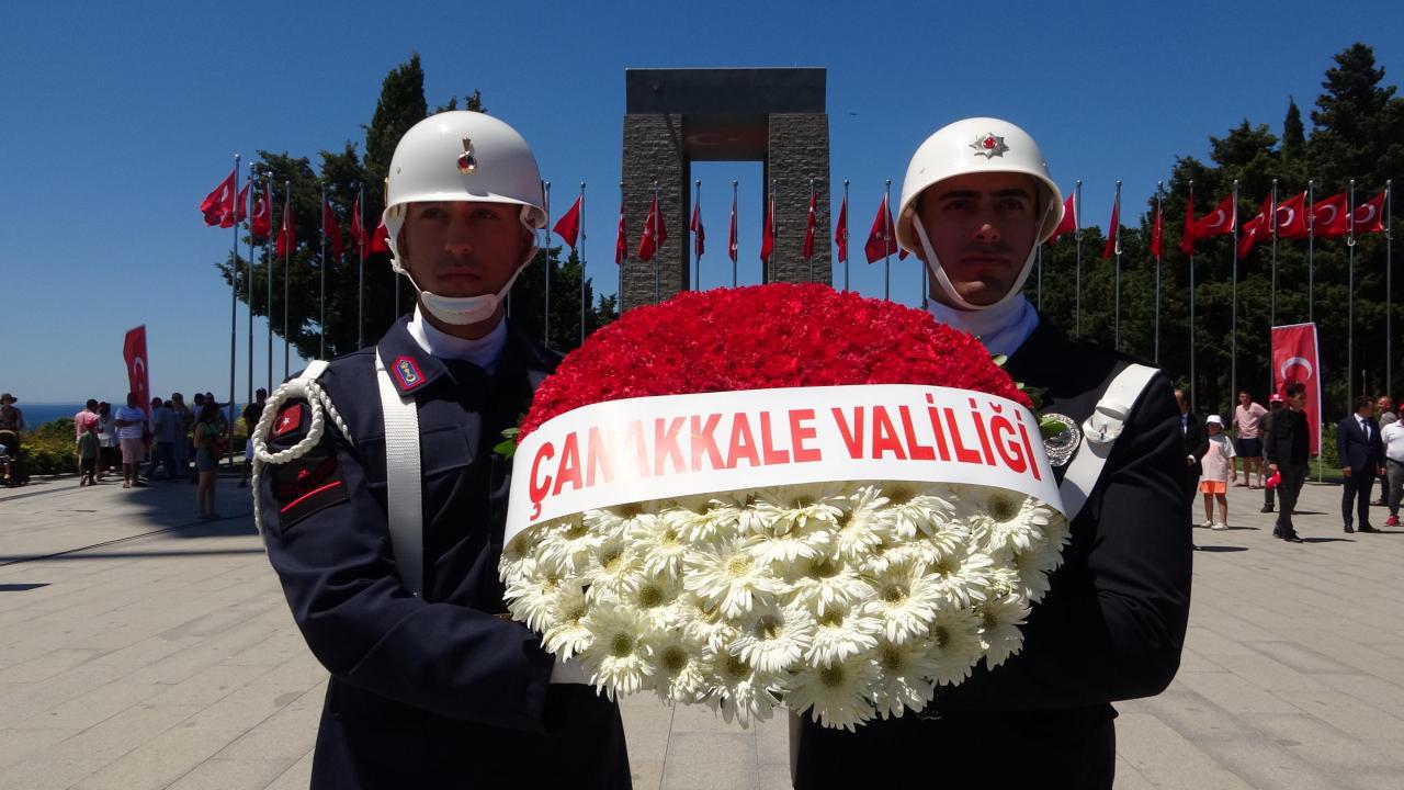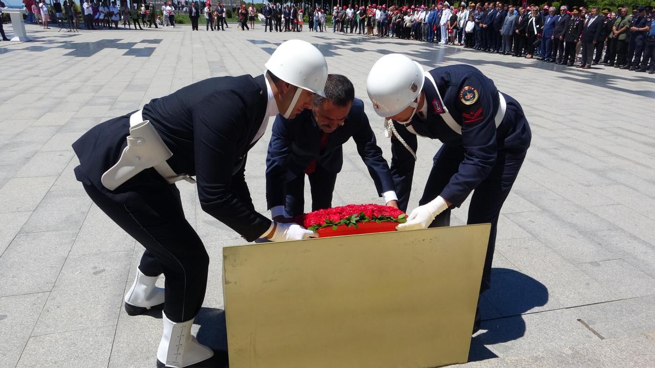 Vali Aktaş tarafından Şehitler Abidesi önündeki Çanakkale Savaşları Kahramanları`nın rölyeflerindeki Atatürk Anıtı`na çelenk konuldu.