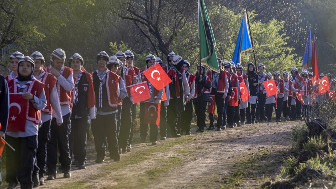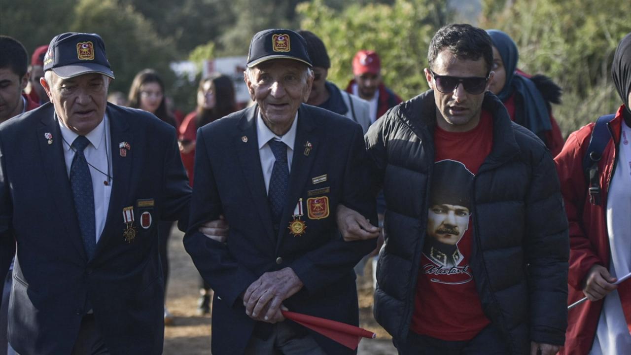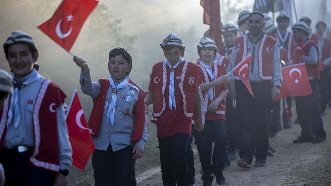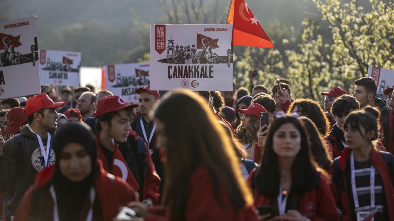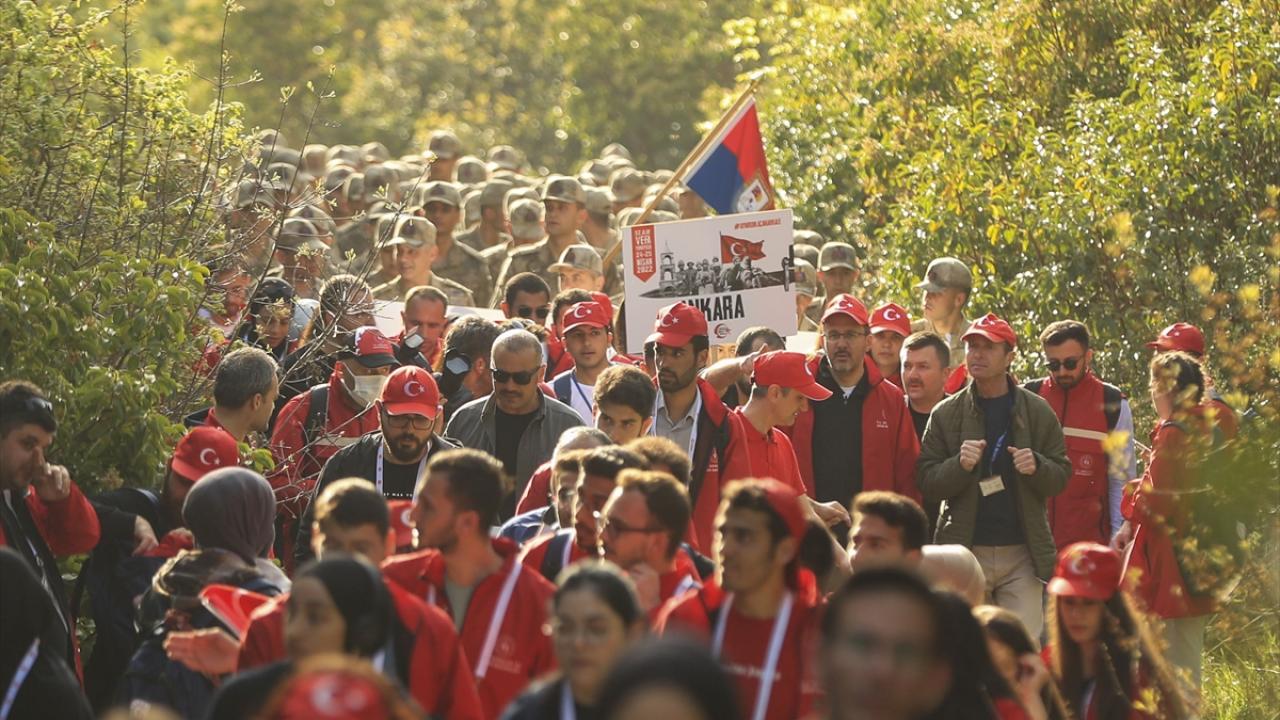 Yürüyüşte Çanakkale Kara Savaşları Zaferi`nin 107. yılına ithafen 107 metrelik Türk bayrağı da açıldı.