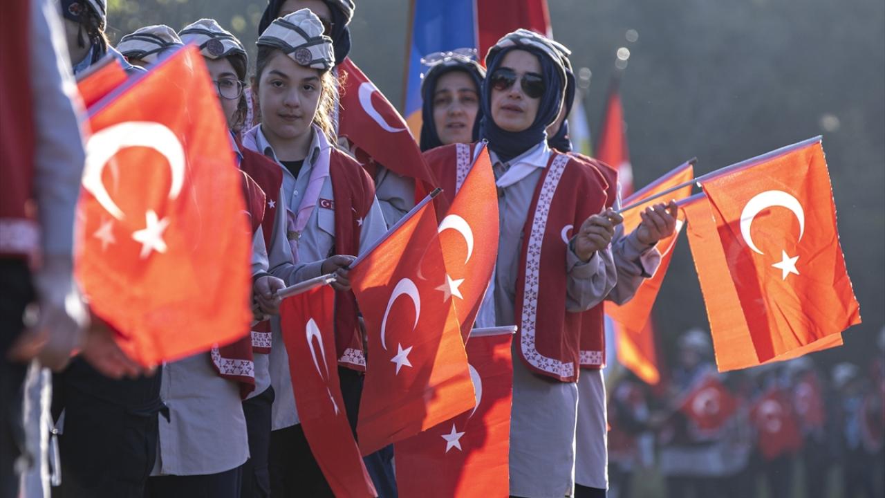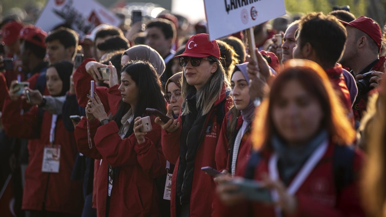 Etkinliğe Türk öğrencilerin yanı sıra askeri okul öğrencileri, izciler, gençlik merkezinden öğrenciler ile milli sporculardan oluşan yaklaşık 3 bin kişi katıldı.