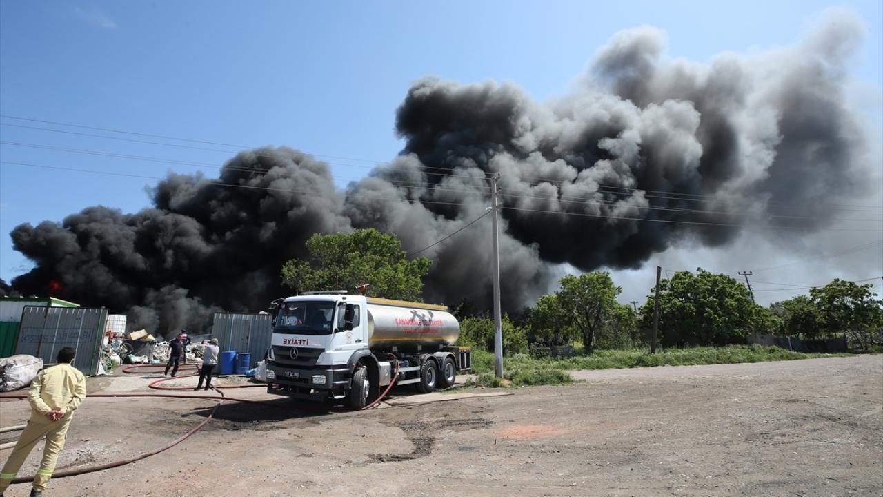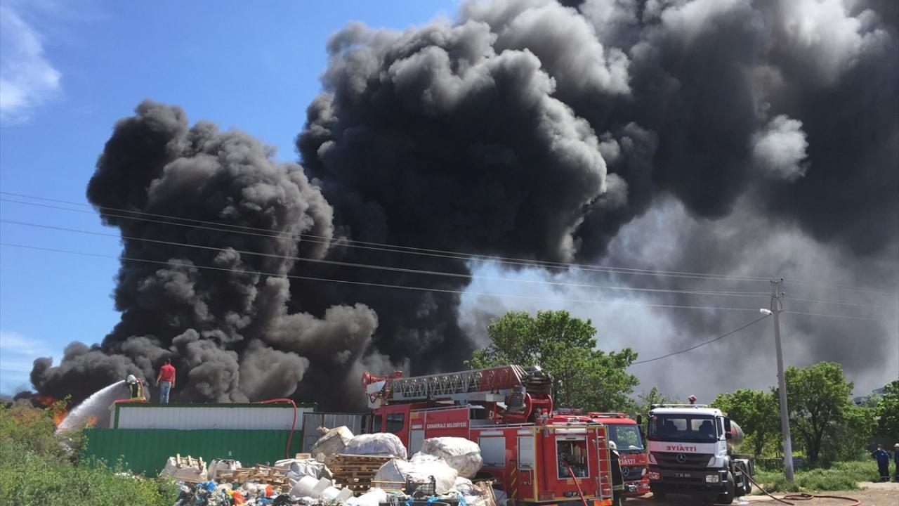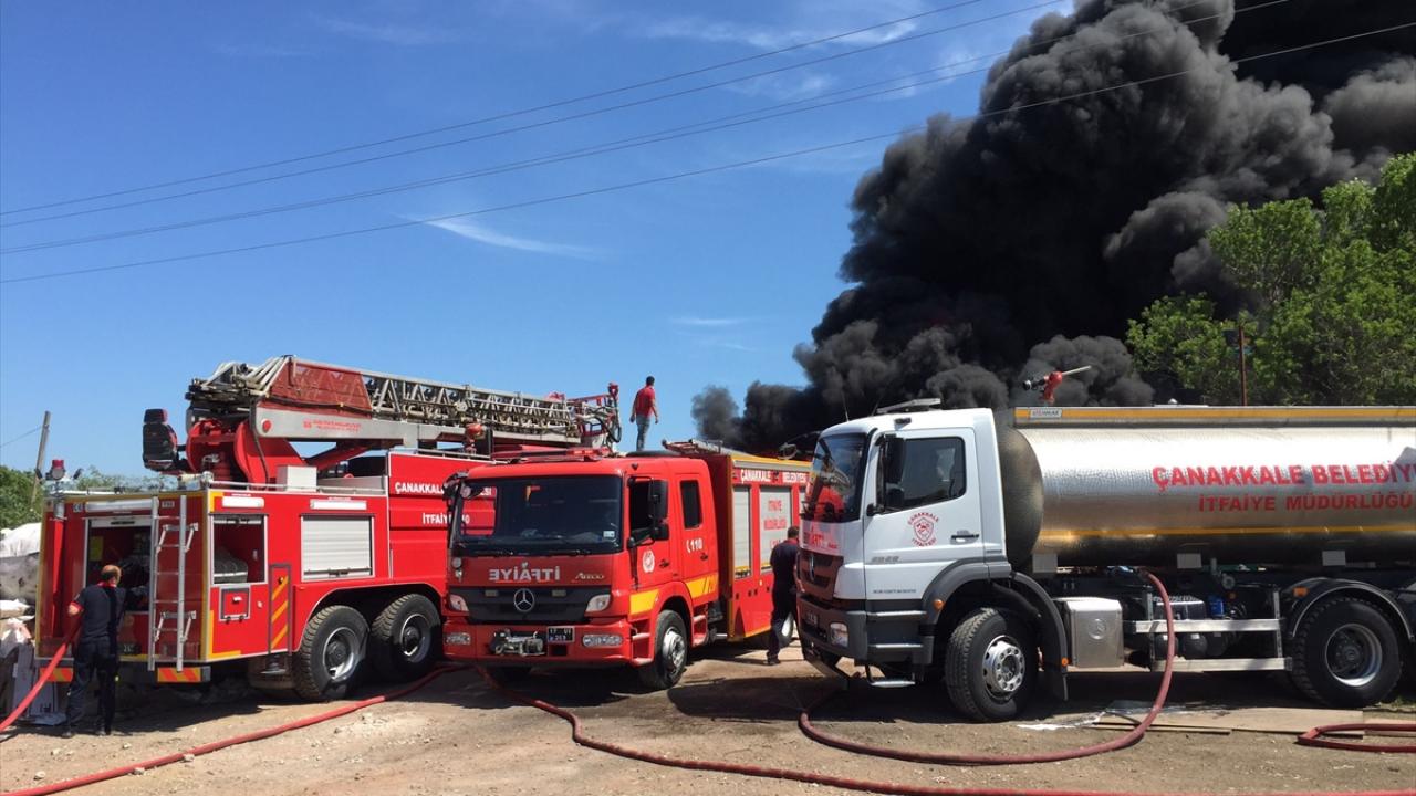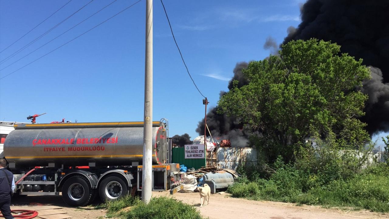 Çanakkale merkeze bağlı Özbek köyünde atıkların bulunduğu tesiste çıkan yangının söndürülmesi için çalışma başlatıldı.