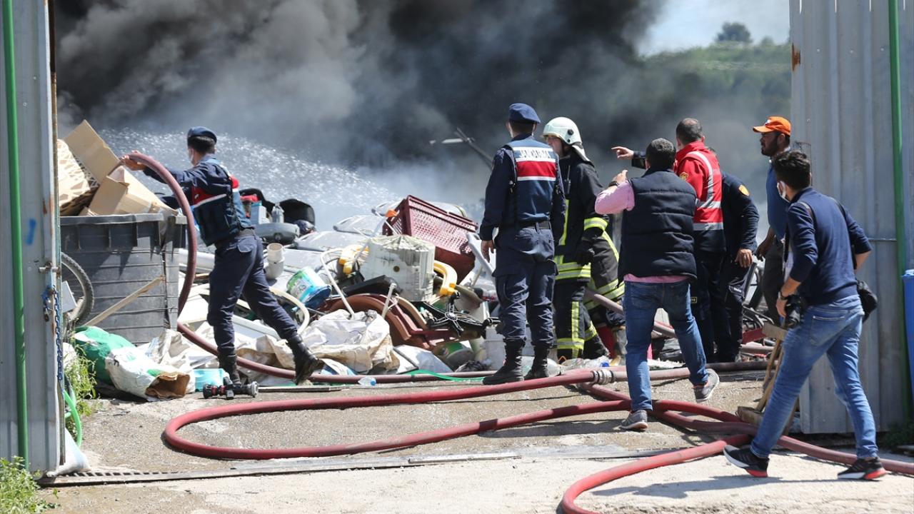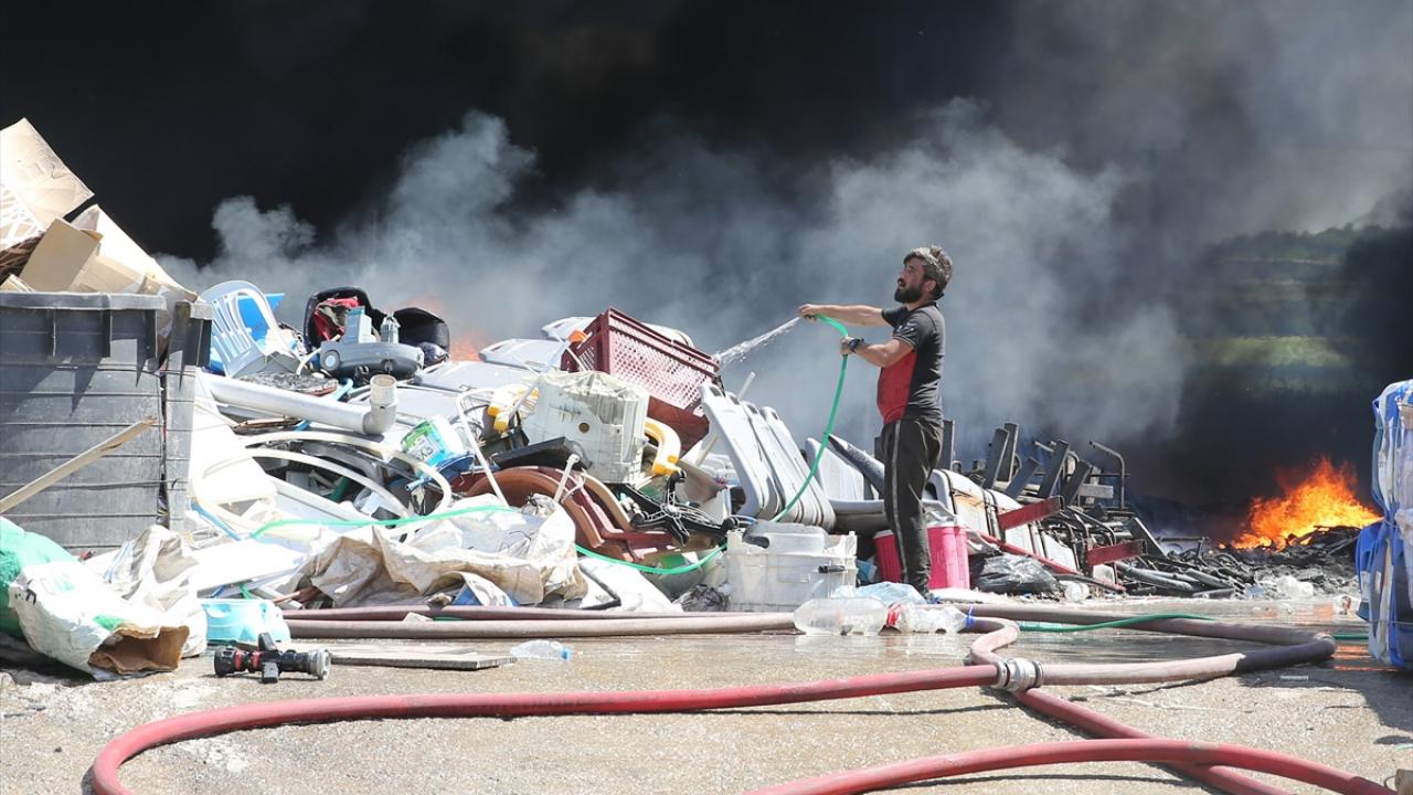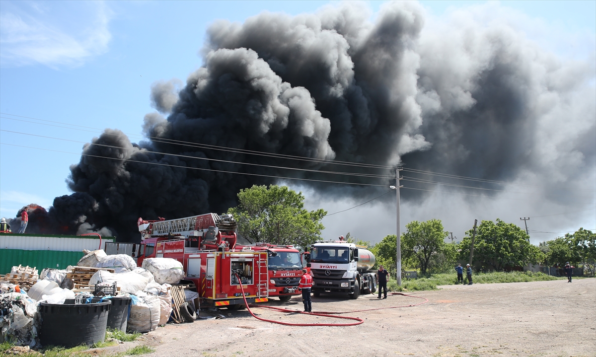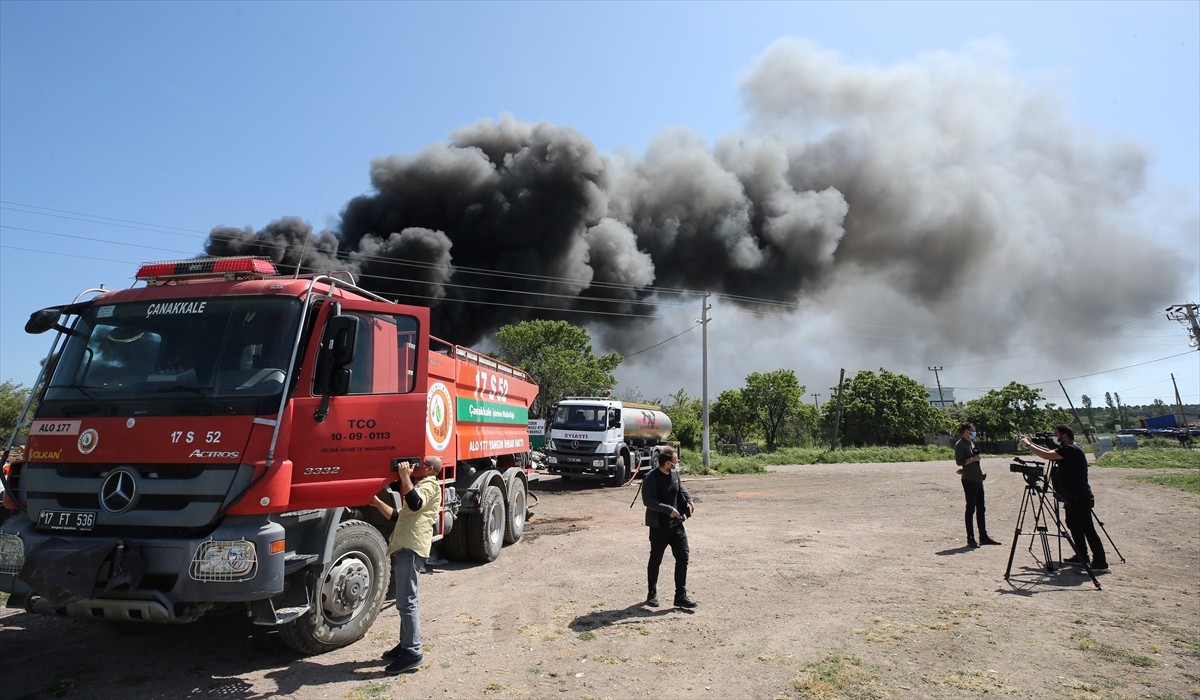 Çanakkale merkeze bağlı Özbek köyünde atıkların bulunduğu tesiste çıkan yangının söndürülmesi için çalışma başlatıldı.