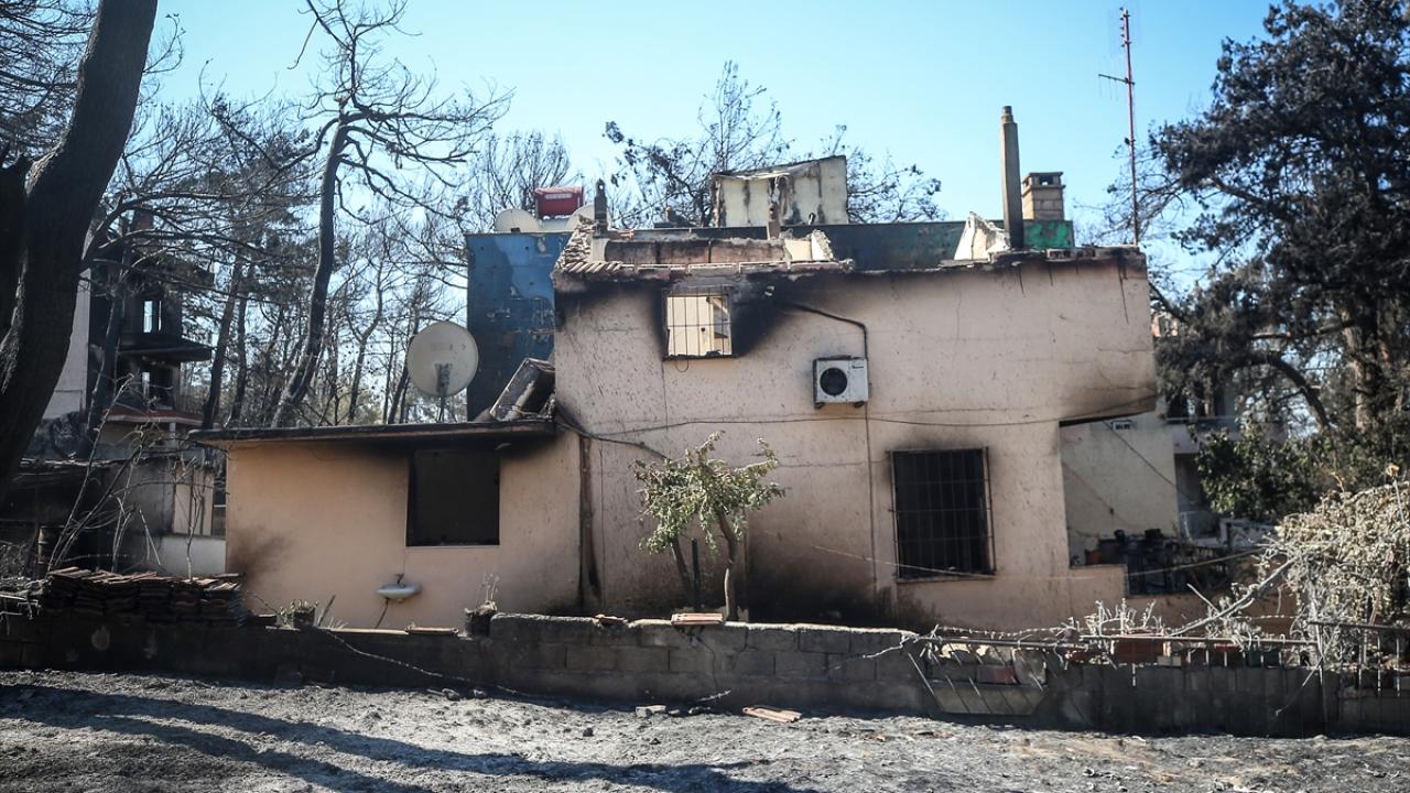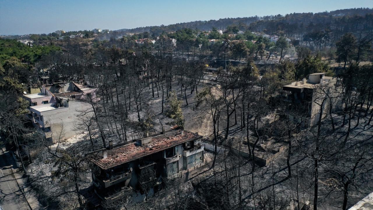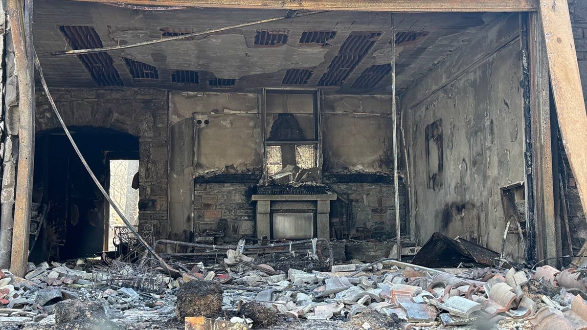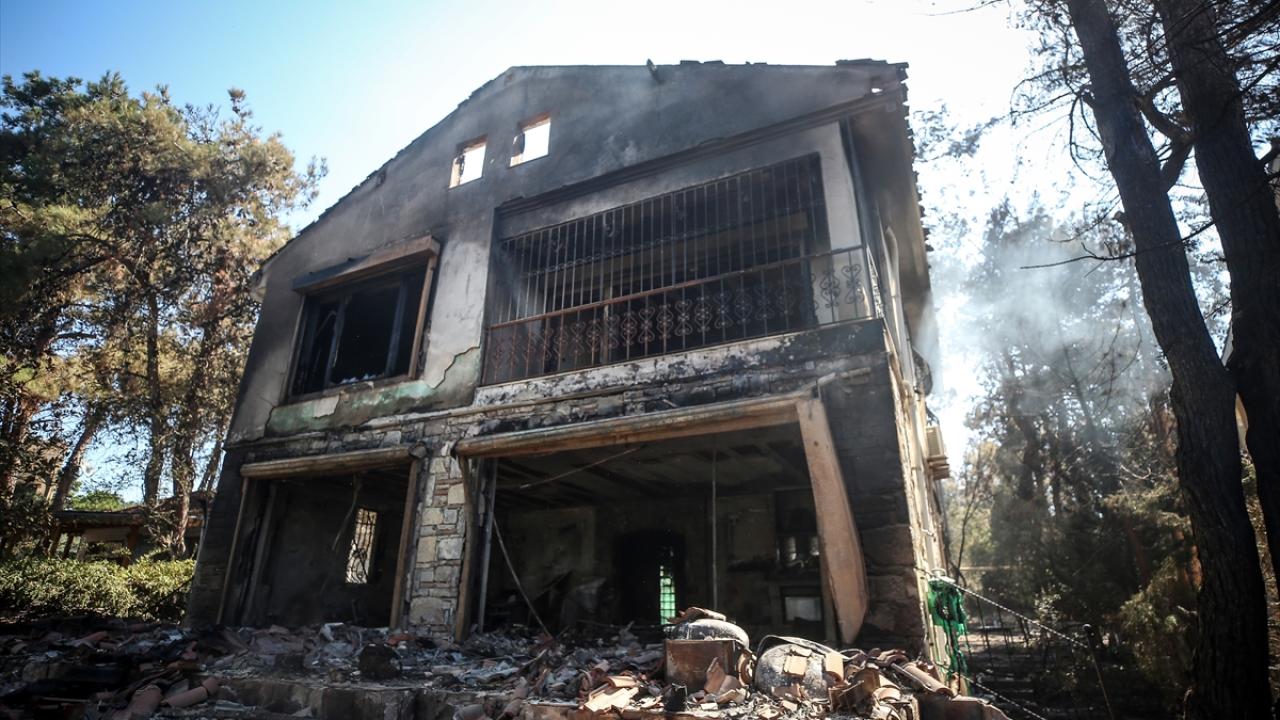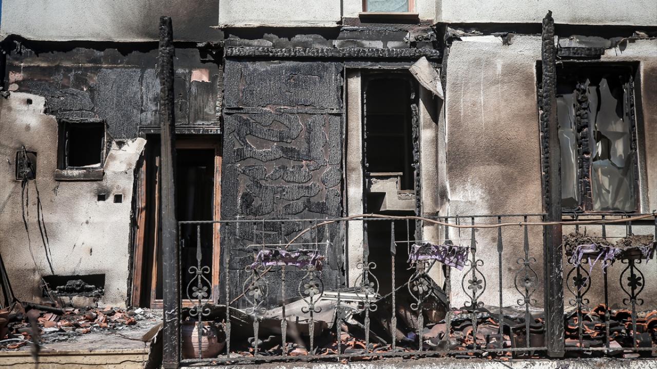 Yangından kaynaklı yanan evler ve alan havadan görüntülendi.