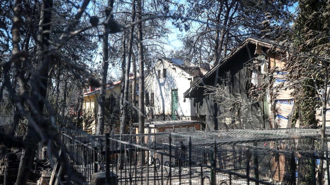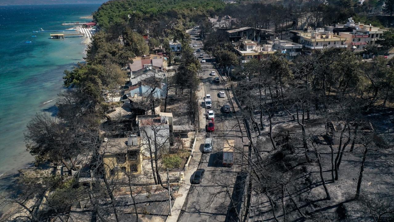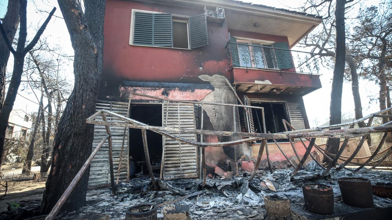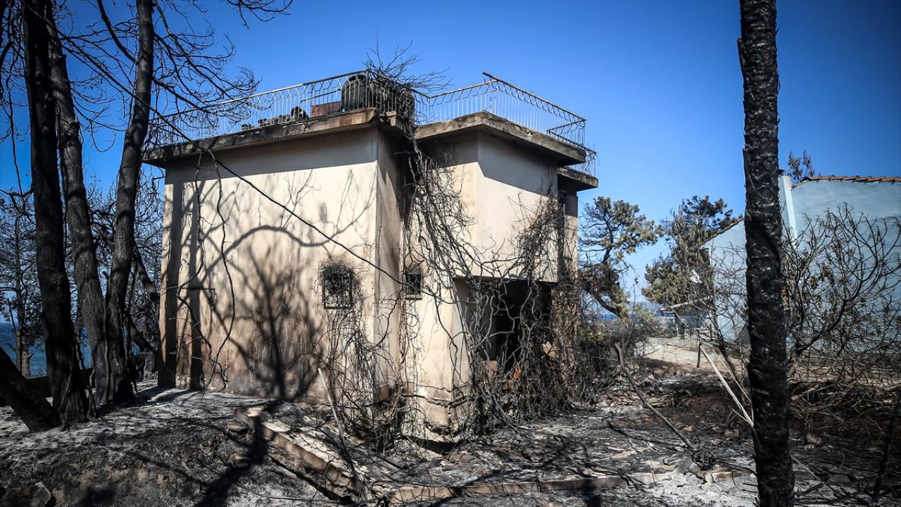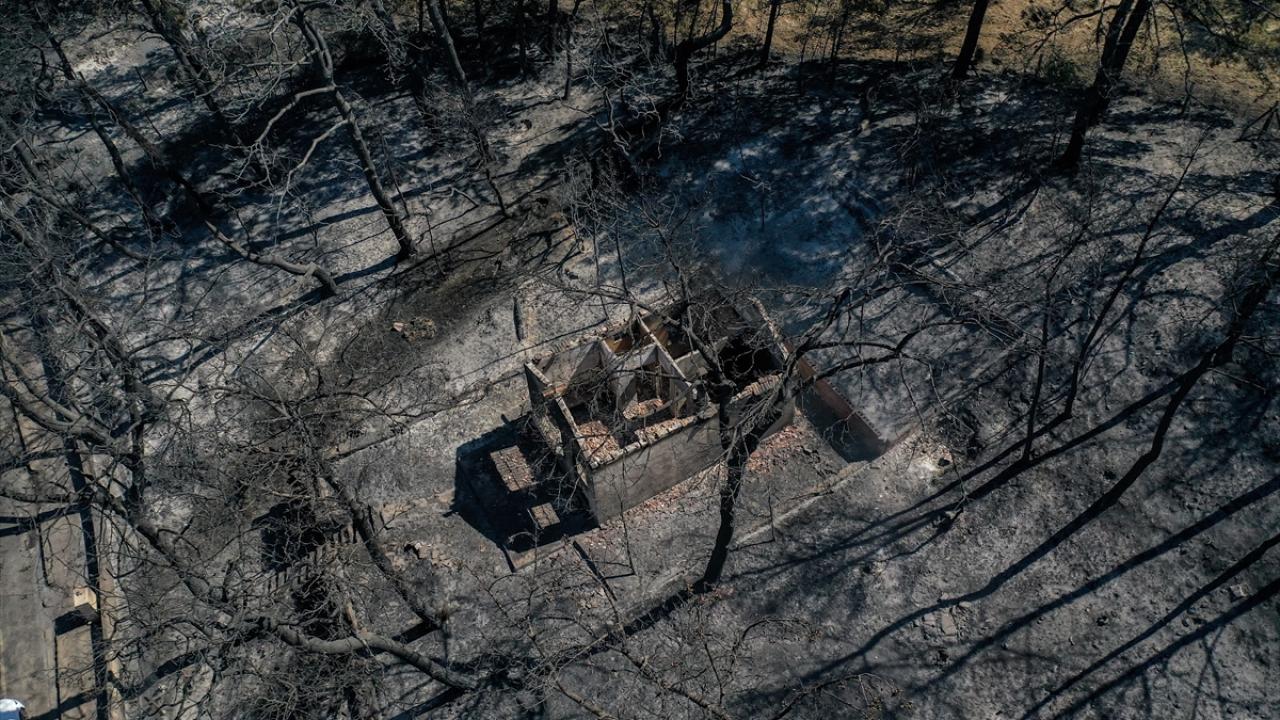 Yangından kaynaklı yanan evler ve alan havadan görüntülendi.