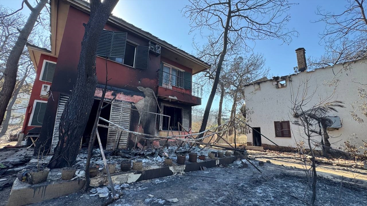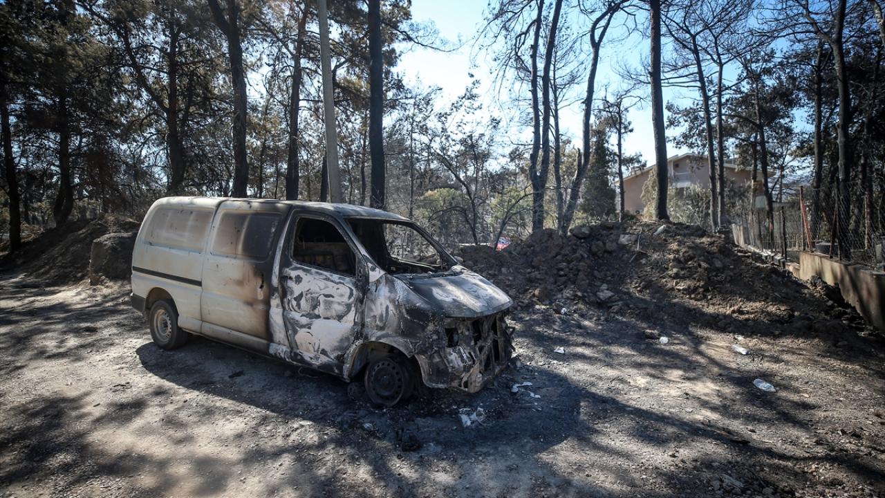 Çanakkale'nin merkez ilçesine bağlı Kepez beldesinde çıkan orman yangınında yanan evler ve araçlar görüntülendi.