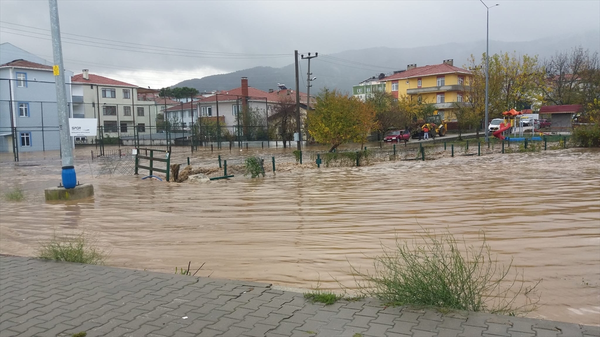 İlçe merkezi ile Aşağıçavuş köyünde gece başlayan ve aralıklarla süren şiddetli yağış, taşkınlara yol açtı.