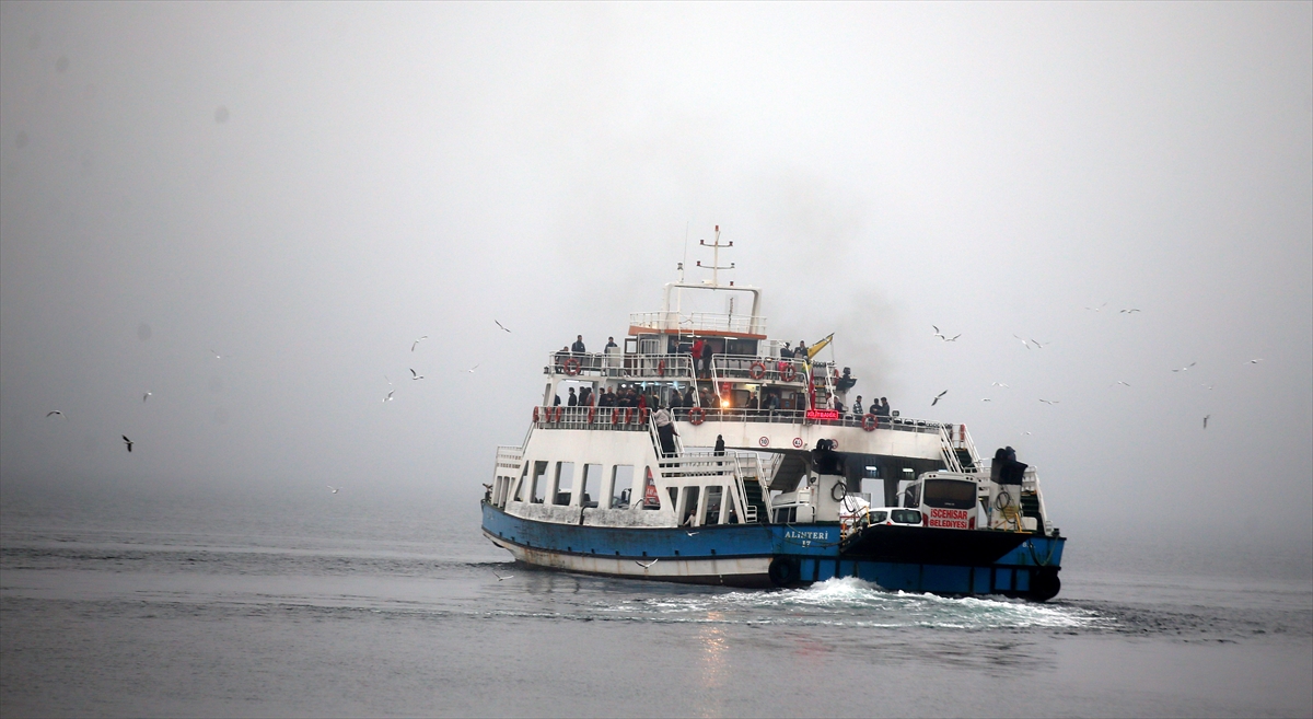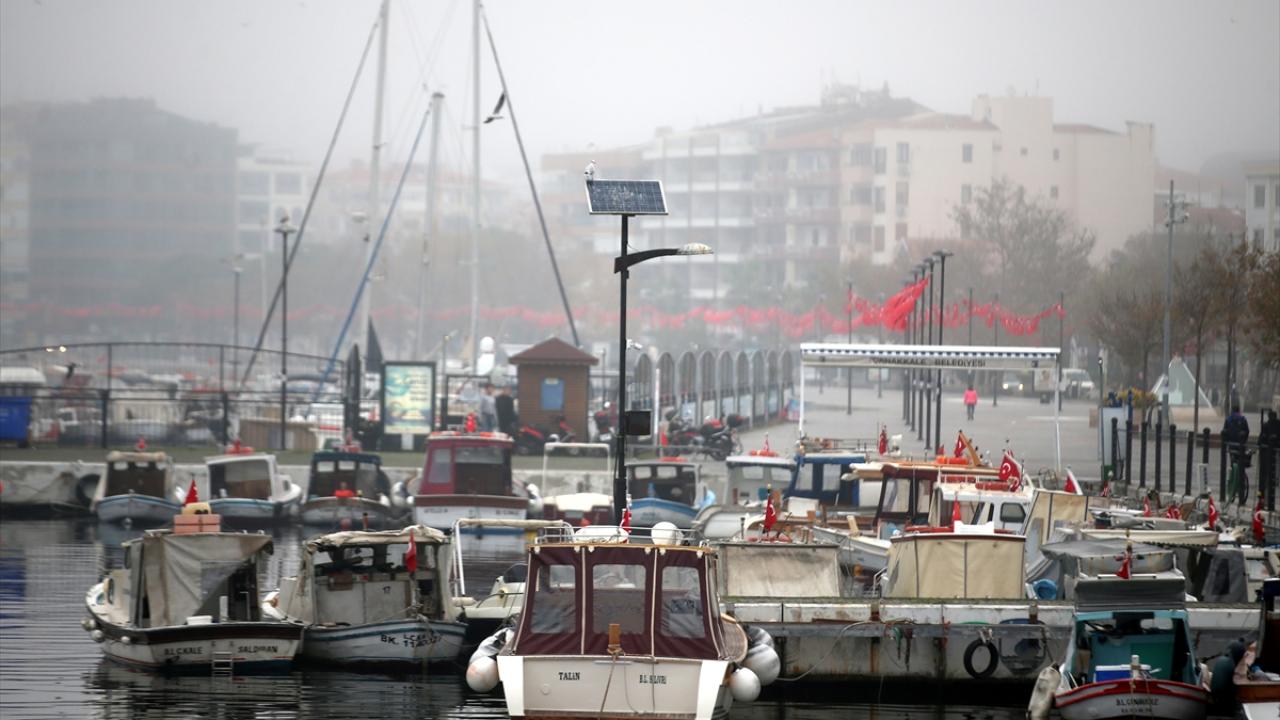 Çanakkale'de akşam saatlerinden itibaren etkisini artıran sis nedeniyle denizdeki görüş mesafesi düştü.