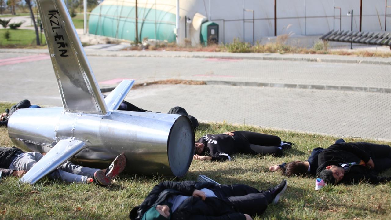 Senaryo gereği, Çanakkale-Çumra seferini yapan 88 yolcu ve 6 mürettebatı bulunan Kızıl-Erdem Havayollarına ait TK15479 sefer sayılı Boeing 737-800 tipi uçak, havalimanına son yaklaşmasında teknik arıza nedeniyle fakültenin bahçesine düştü.