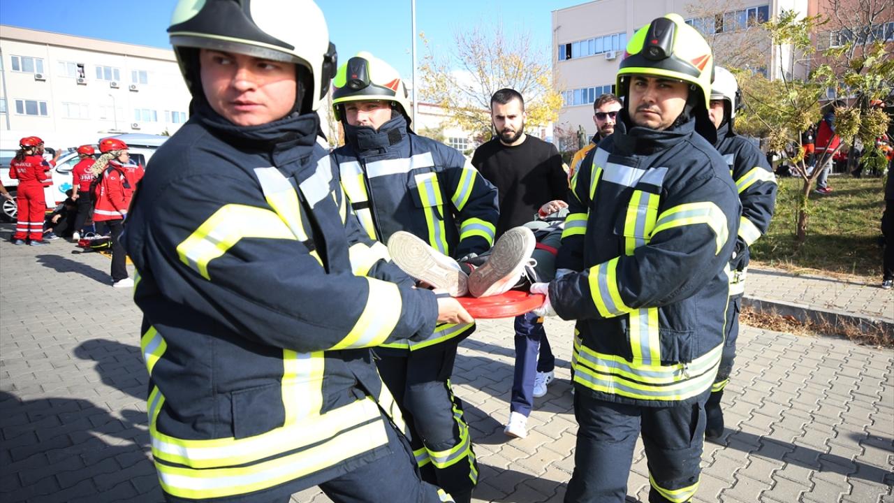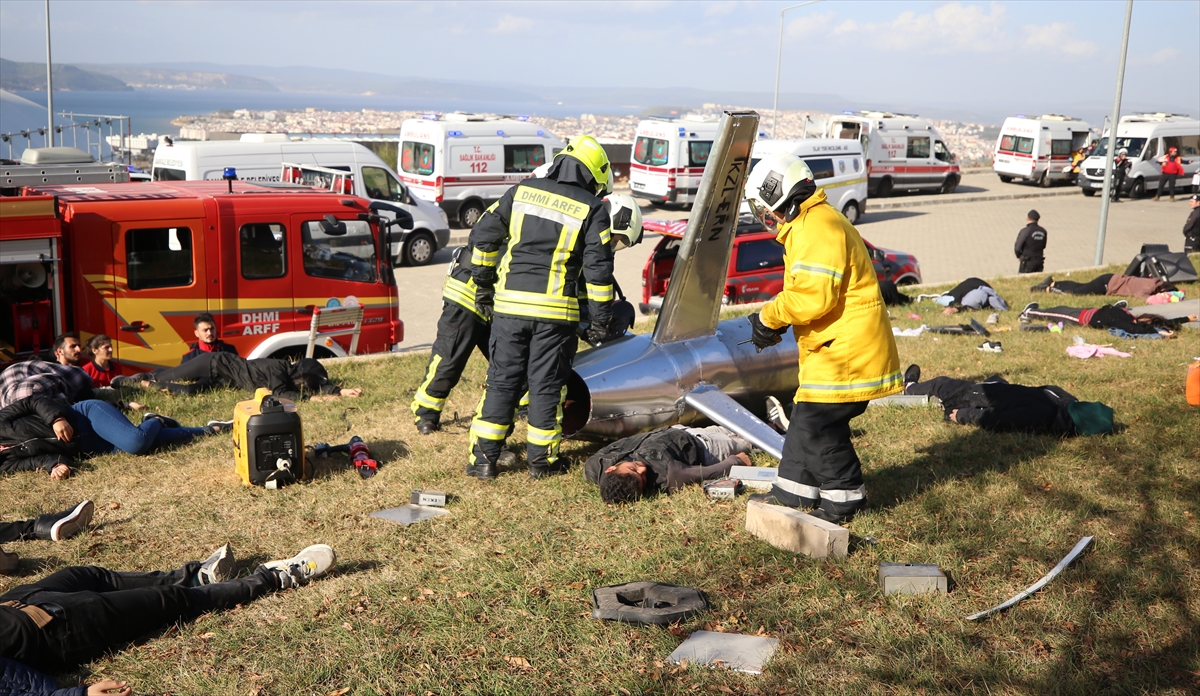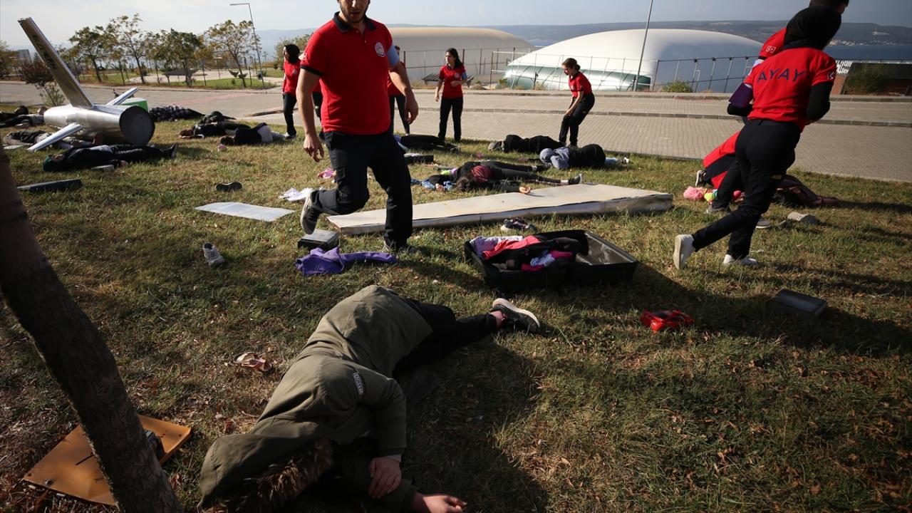 149 personelin görev aldığı tatbikatta, kazazede ve yolcu yakınlarını da ÇOMÜ Acil Yardım ve Afet Yönetimi Bölümünün 133 öğrencisi canlandırdı.
