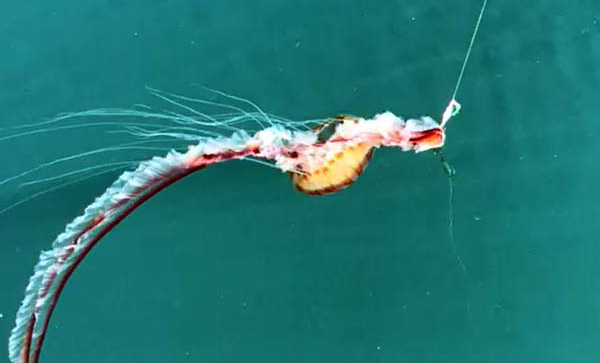Kırmızı, kahverengi ve sarı renklerde olabilen, 1,5 metreyi bulan tentaküllere sahip denizanaları, cep telefonu kamerası ile de görüntülendi.