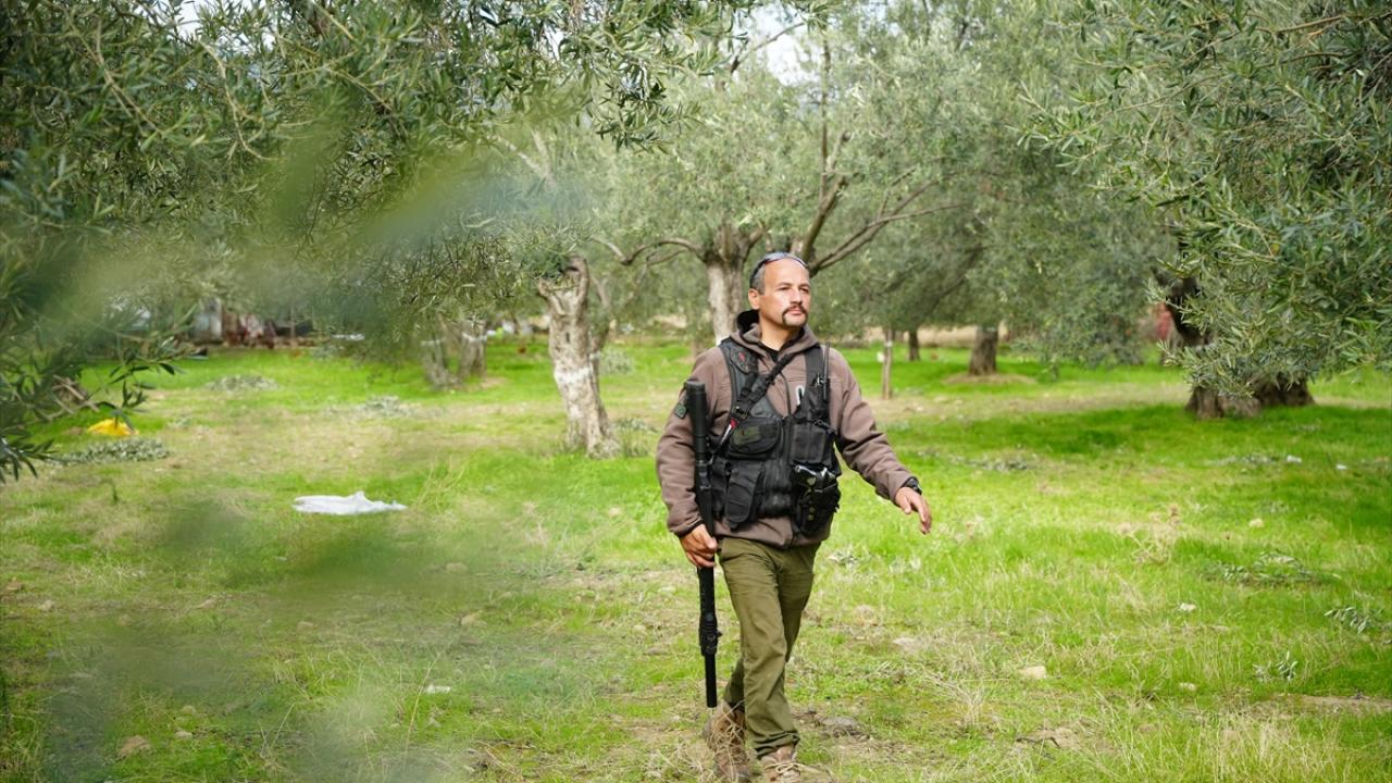 Haftanın 7 günü 12 bin dönüm arazide sürekli devriye görevinde bulunan Şaşmaz, dronla zeytinlikleri havadan da gözetliyor.