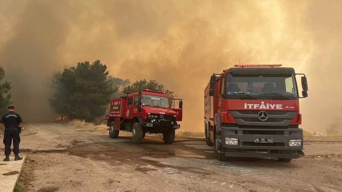 Bölgeye, Balıkesir ve Bursa`dan takviye arazöz ve itfaiye araçları geldi.