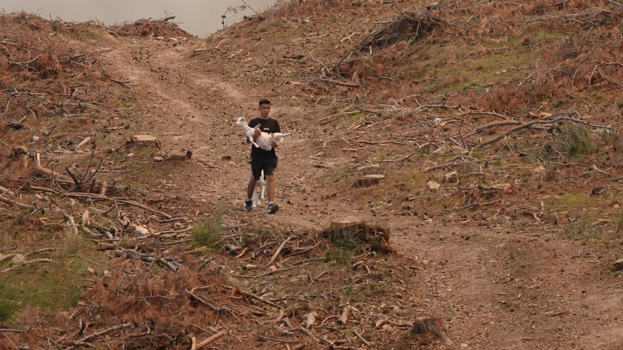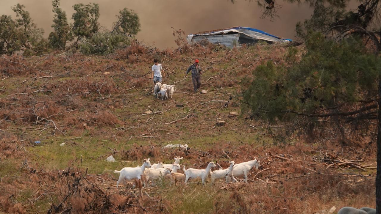 Köylüler hayvanlarını kucaklarında ve sırtlarında taşıyarak alevlerden kurtarmaya çalıştı.