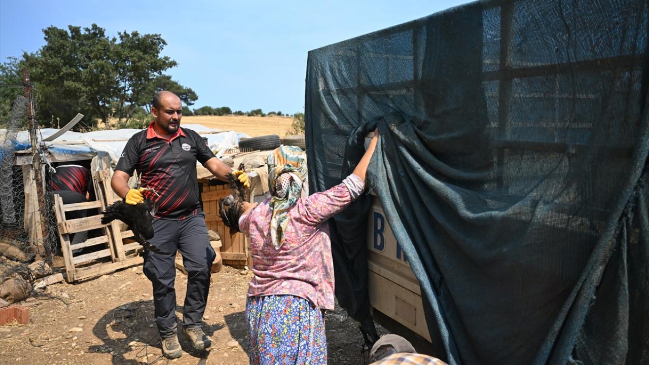 Alevlerin köyün yakınlarına kadar gelmesi nedeniyle Ercan ve Nazife Erol çifti, 100 tavuğunu kümesten tahliye etmek zorunda kaldı.