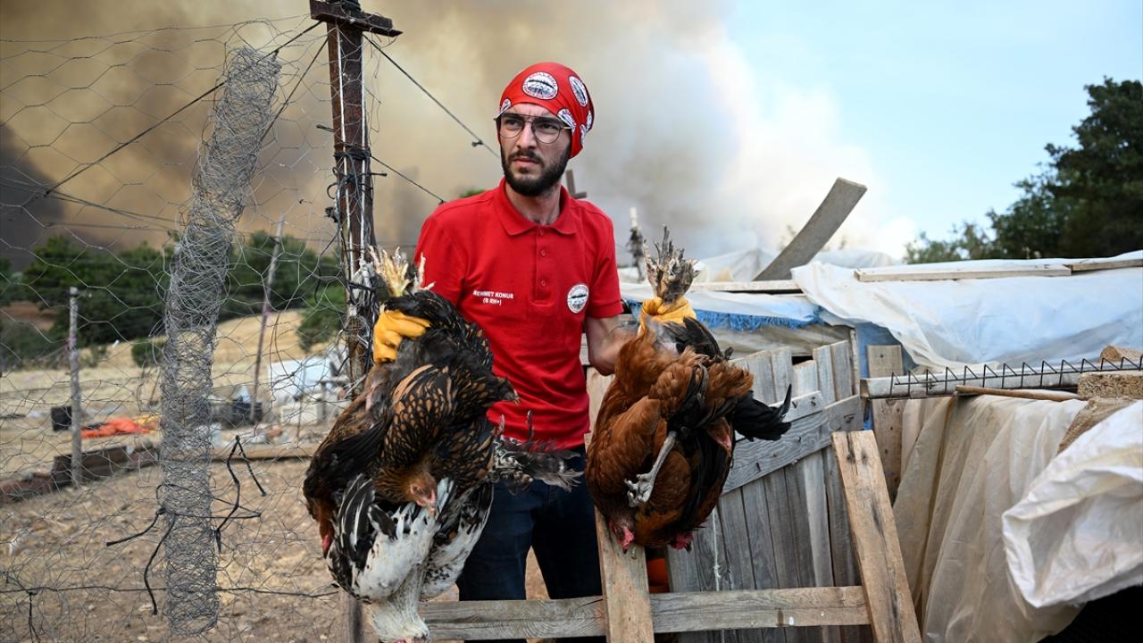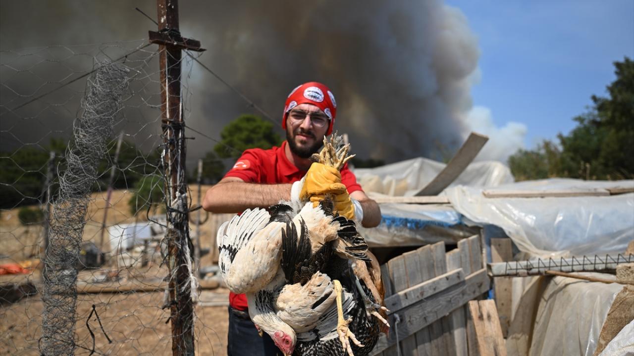 Gönüllü ekiplerle sahada olduklarını belirten Emirbayer, "Sadece insanların değil tüm canlıların kurtarılması için çaba sarf ediyoruz. Ailemizin tavuklarını tahliye ettiğimiz için mutluyuz. Çalışmalarımız yangın sönene kadar devam edecek." diye konuştu.