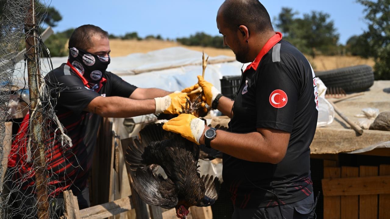 Erol ailesi, çalışmalara katılmak için kente gelen Acil Sivil Arama Kurtarma Derneği üyelerinin desteğiyle tavuklarını güvenli bir alana taşıdı.